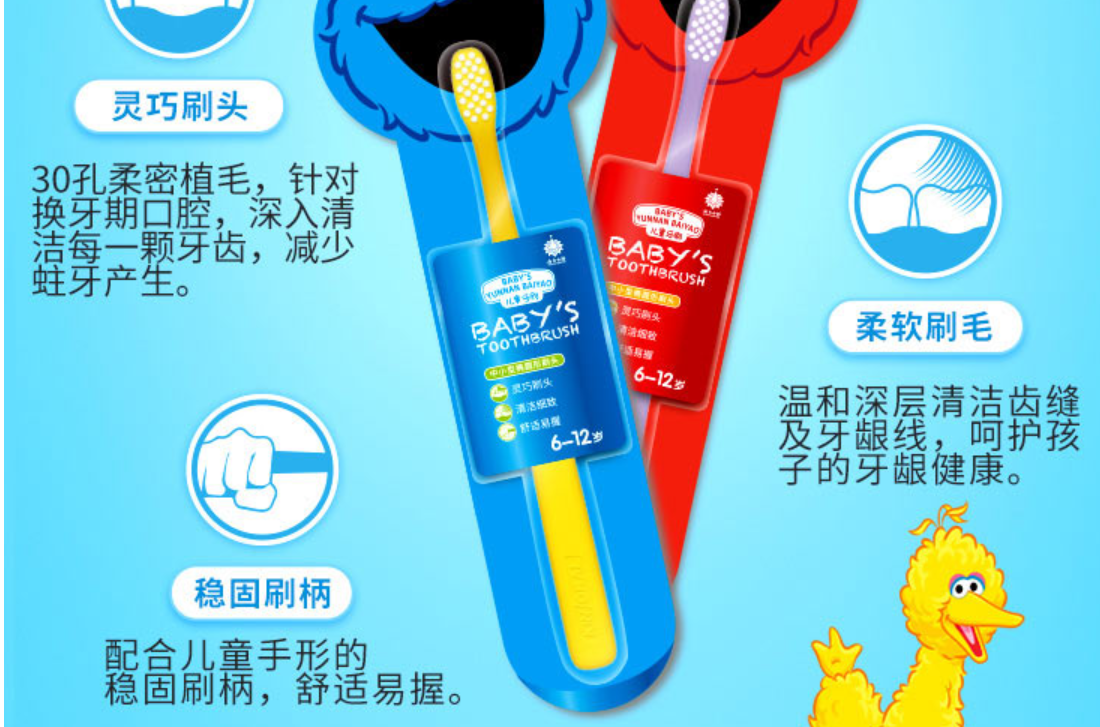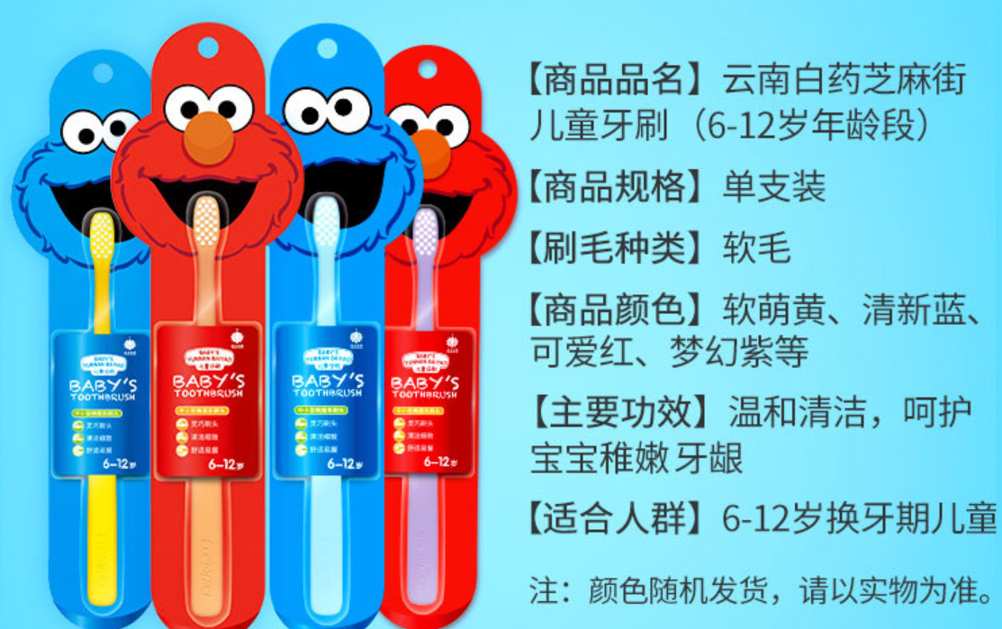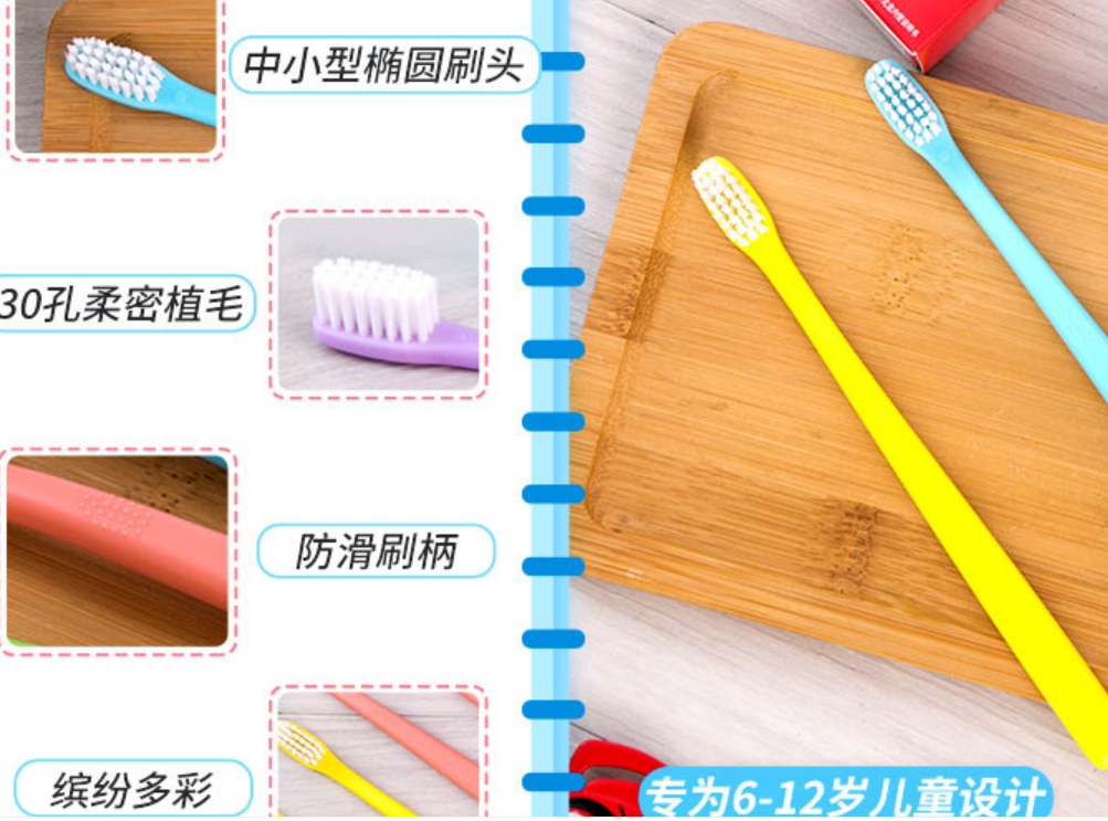 云南白药儿童牙刷护齿防蛀益生菌宝宝换牙期 牙刷 (6-12岁)5支装 红色