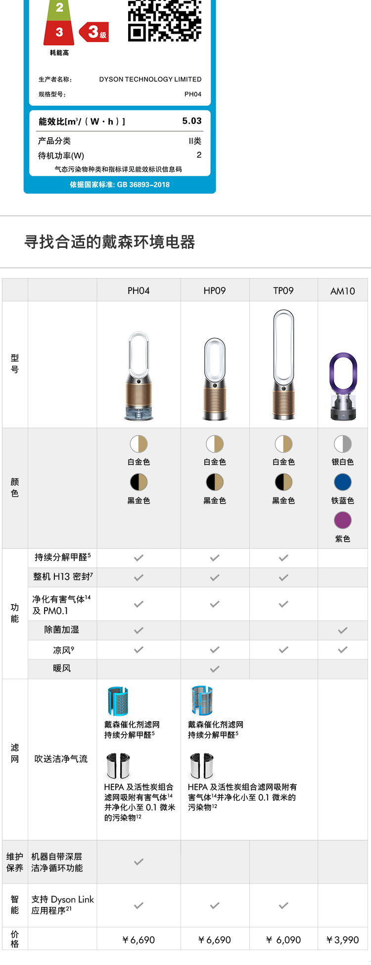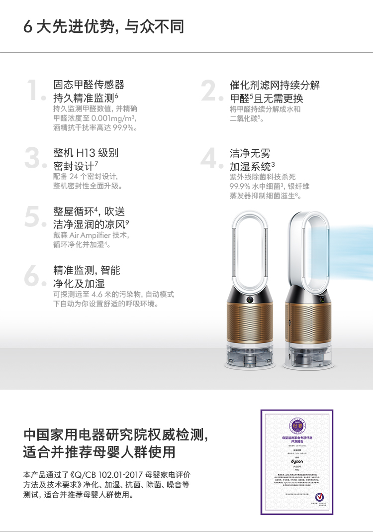 戴森(Dyson)PH04 多功能空气加湿净化器 台 白金色