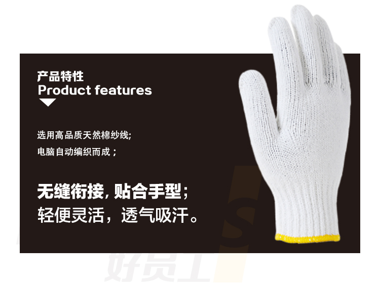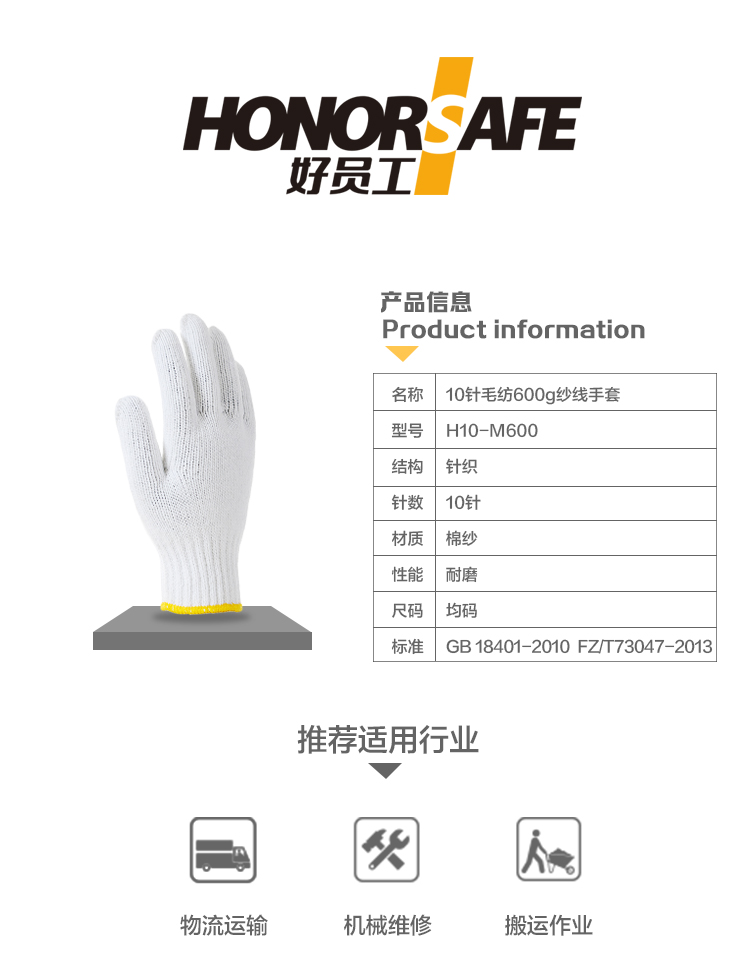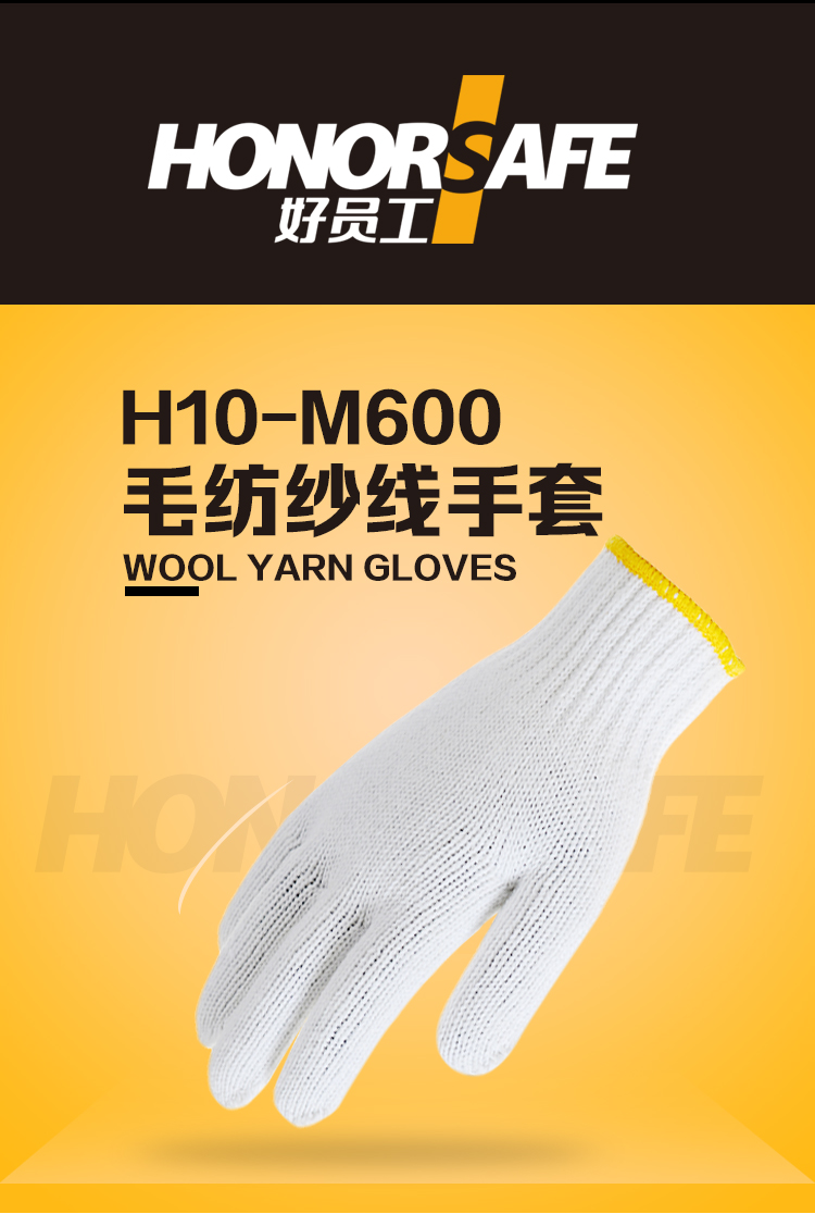 好员工 H10-M600 10针毛纺600g纱线劳保手套 10打(120双) 白色
