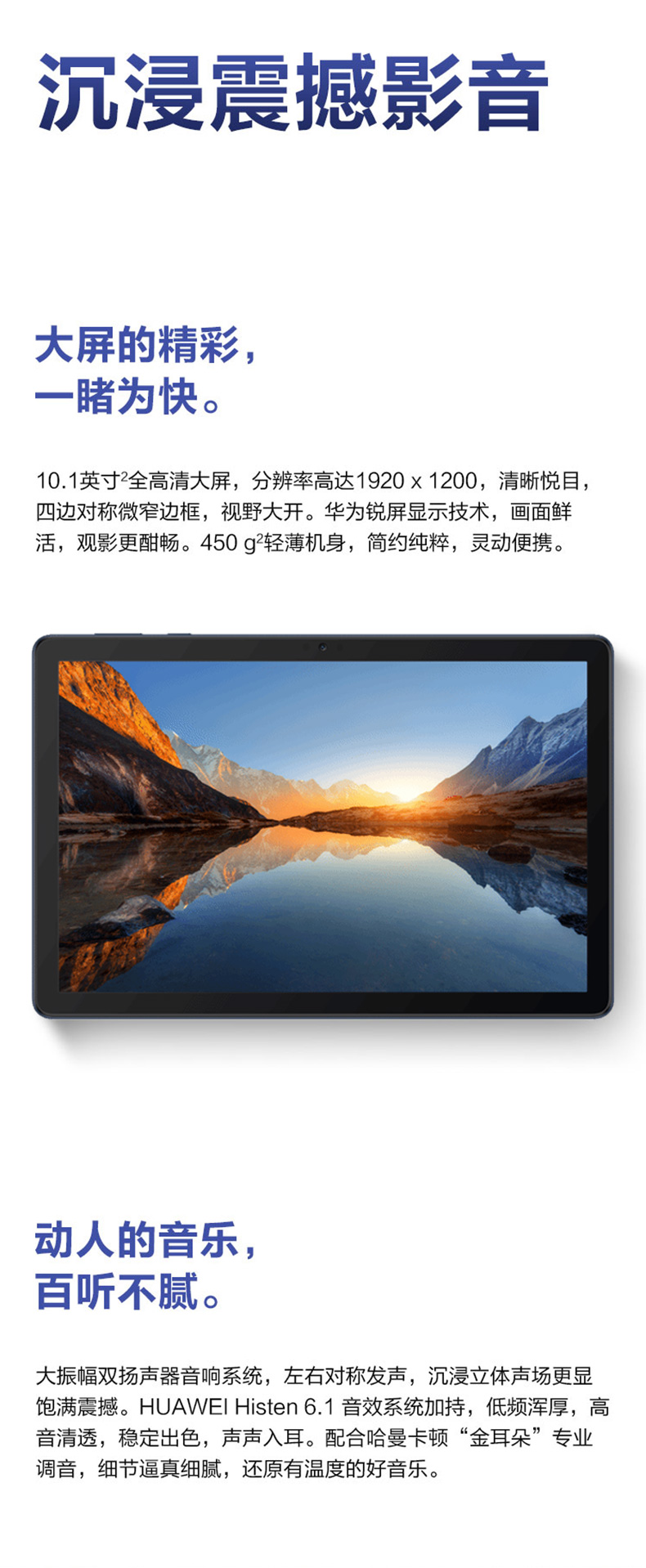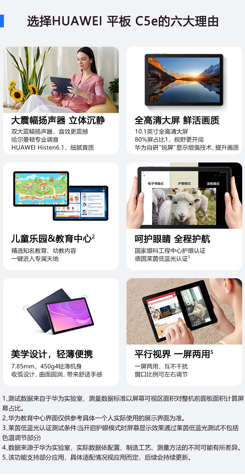 华为平板电脑C5e 10.1英寸高清大屏教育学习娱乐影音视频学生护眼平板 4GB+64GB 全网通 深海蓝 蓝色
