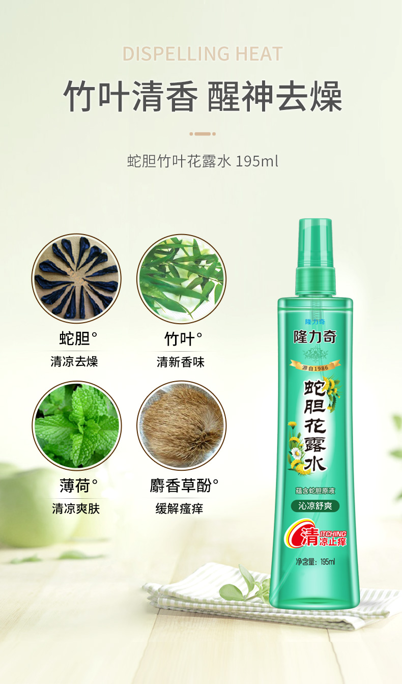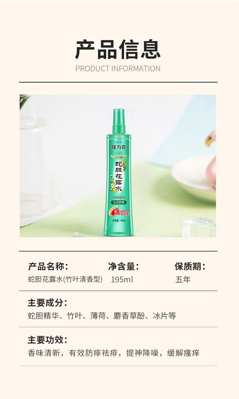 隆力奇蛇胆花露水(竹叶清香型)195ml*3瓶 松石绿