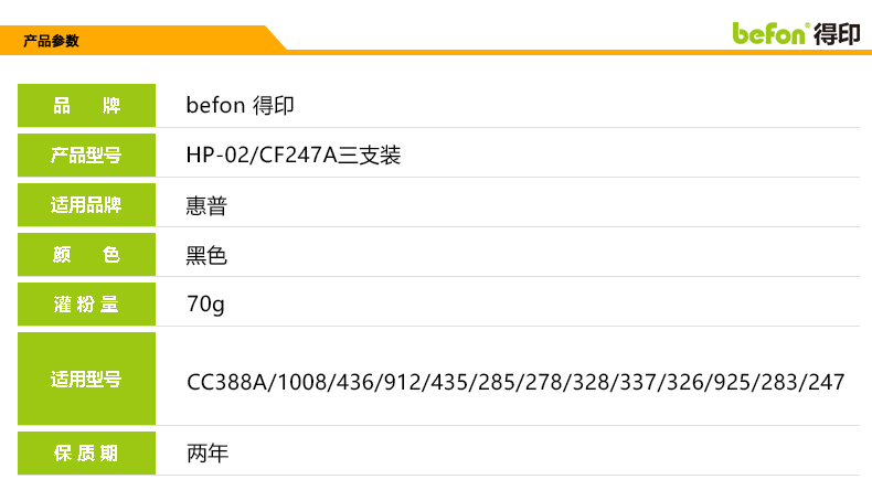 得印碳粉 H-02/CF247A 70g 三支装起订量5个 黑色