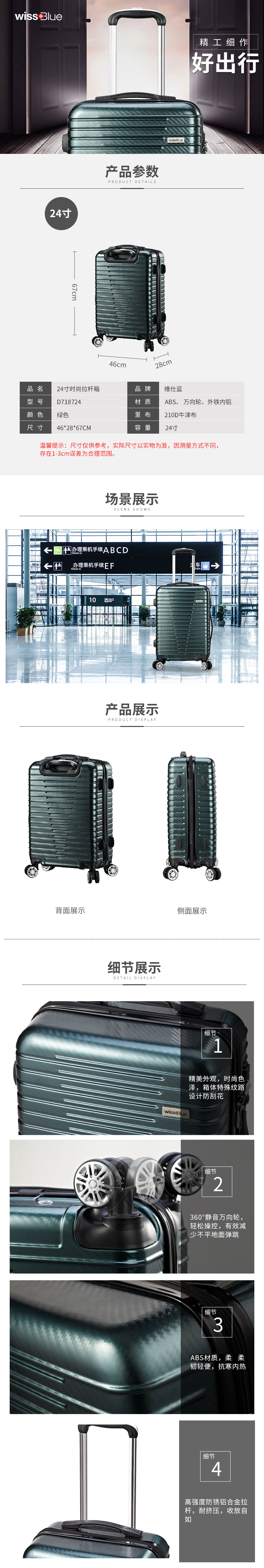 维仕蓝(Wissblue) D718724 24寸 ABS拉杆箱 墨绿色(单位:个)