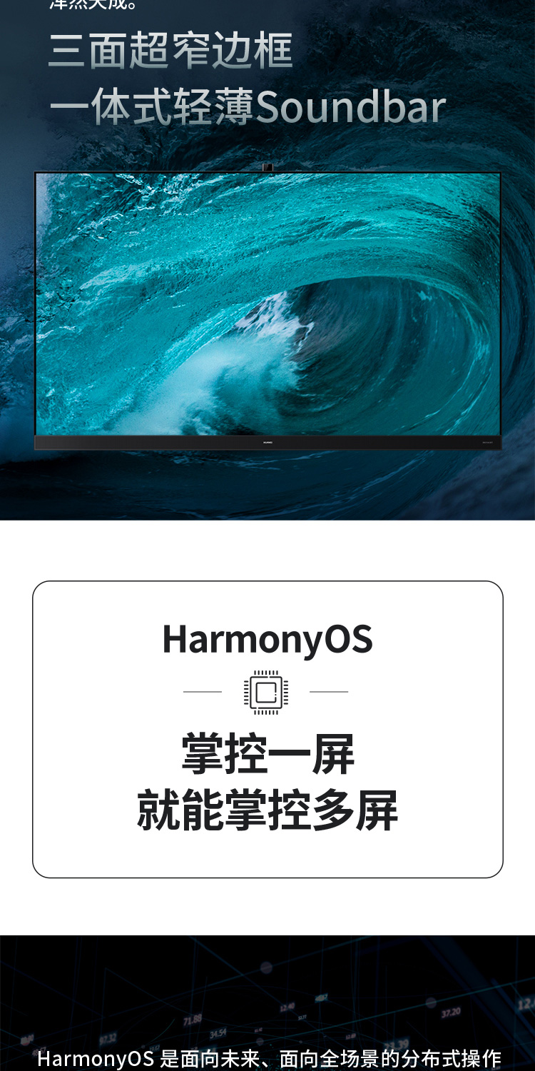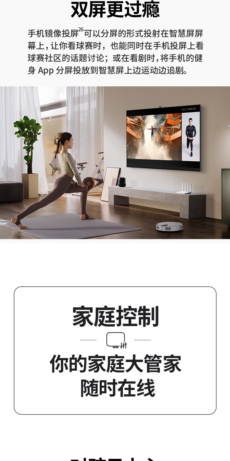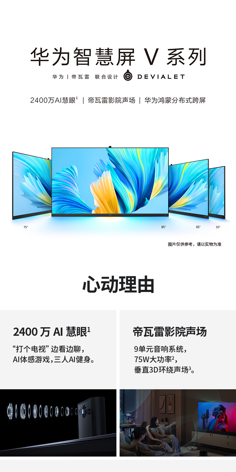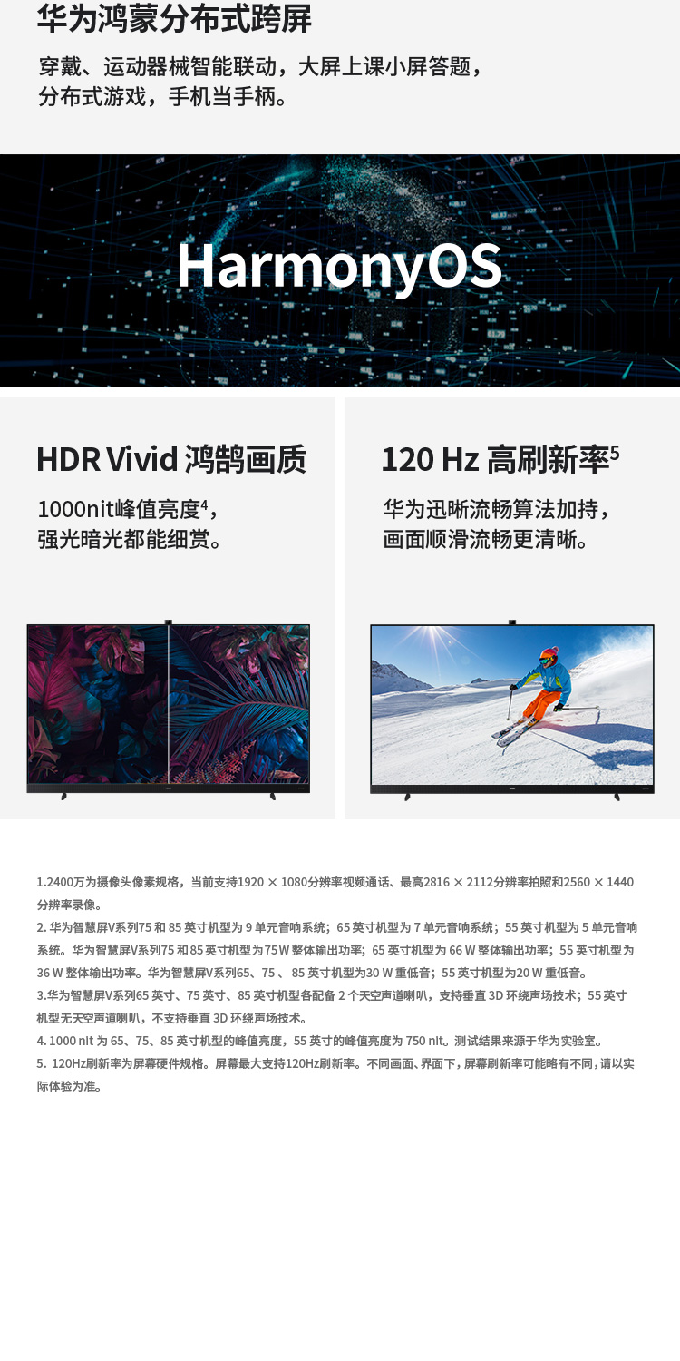 华为智慧屏 V 85 2021款 85英寸超薄全面屏AI摄像头4K液晶游戏电视 帝瓦雷影院声场 鸿蒙HarmonyOS HD85THAA 黑色