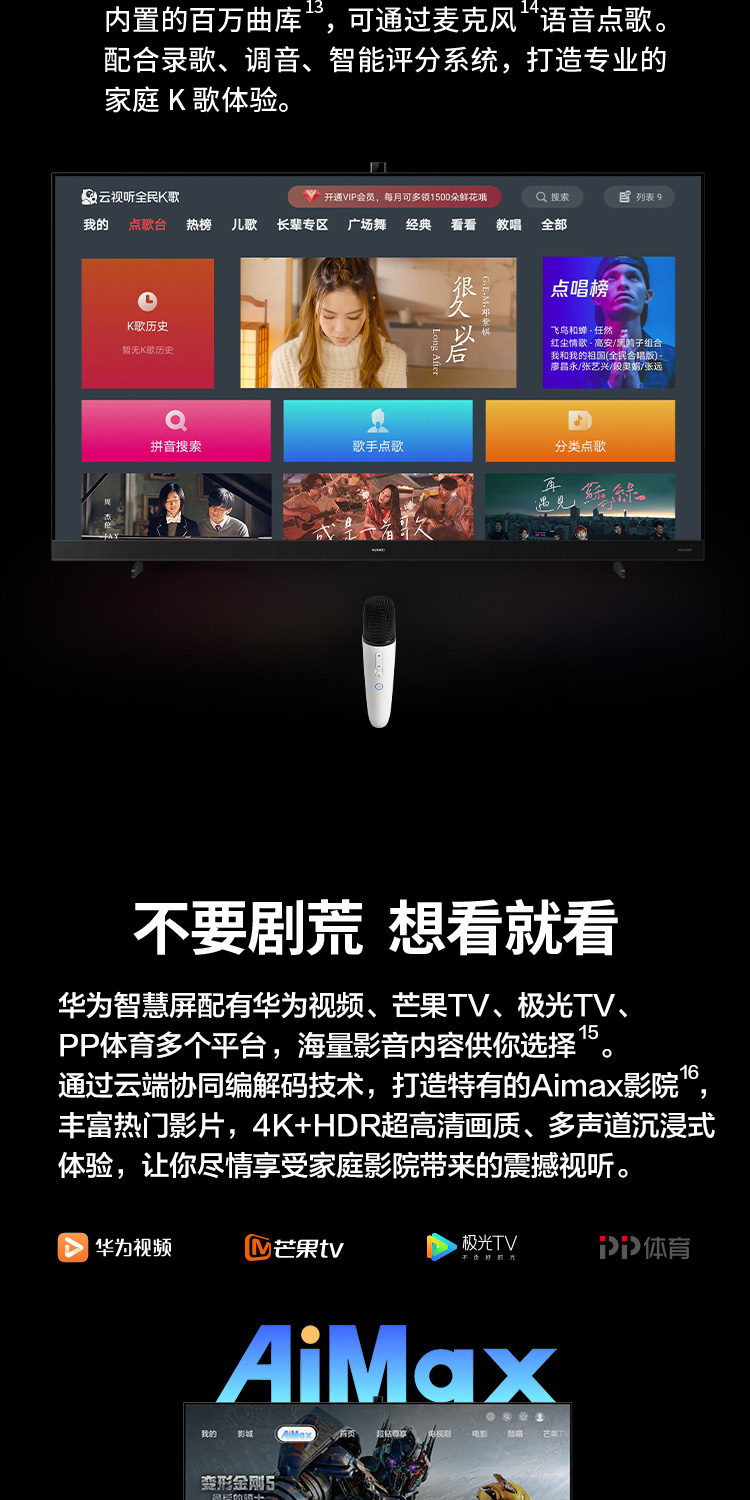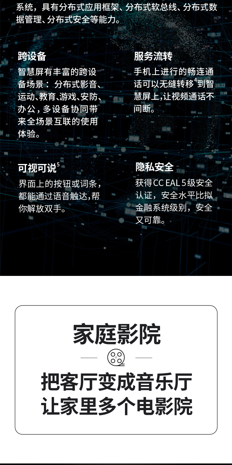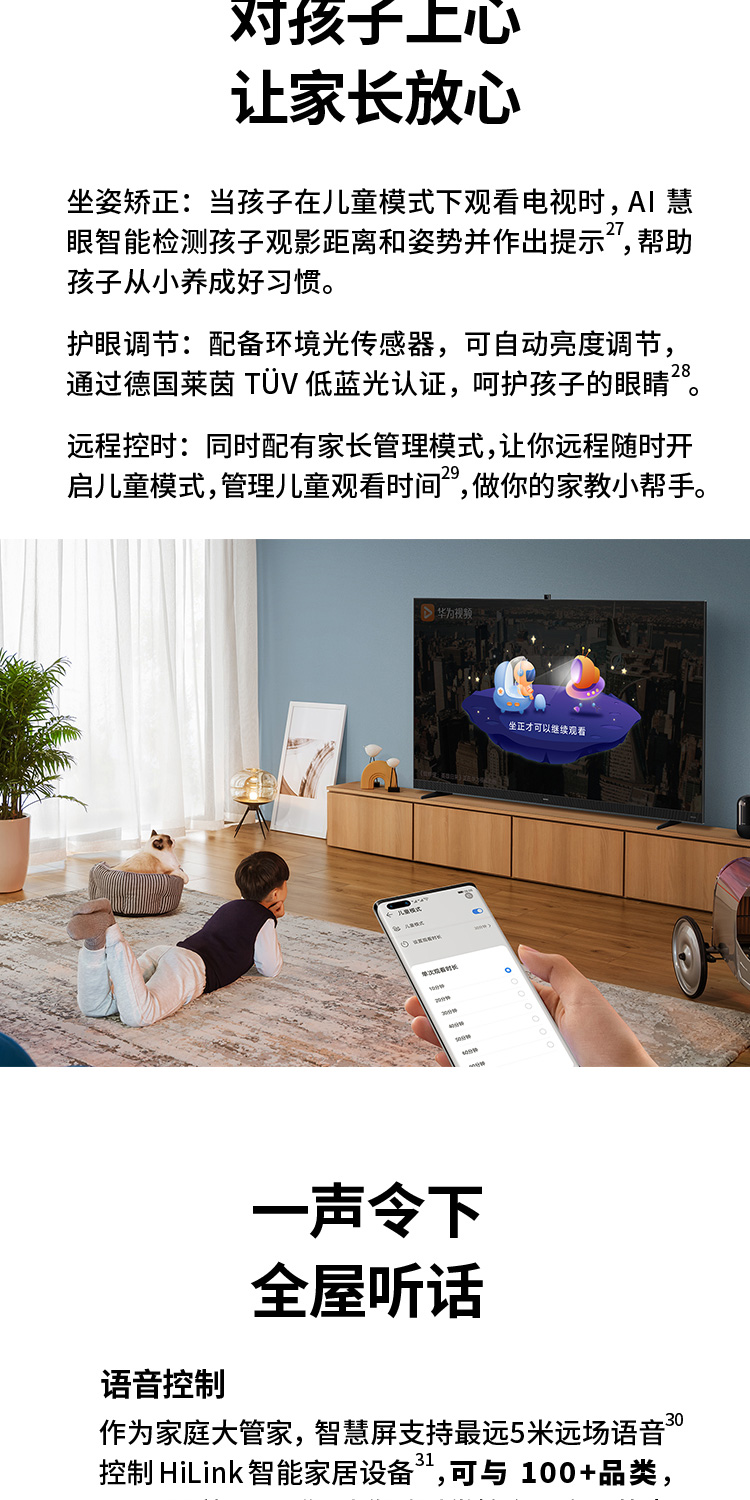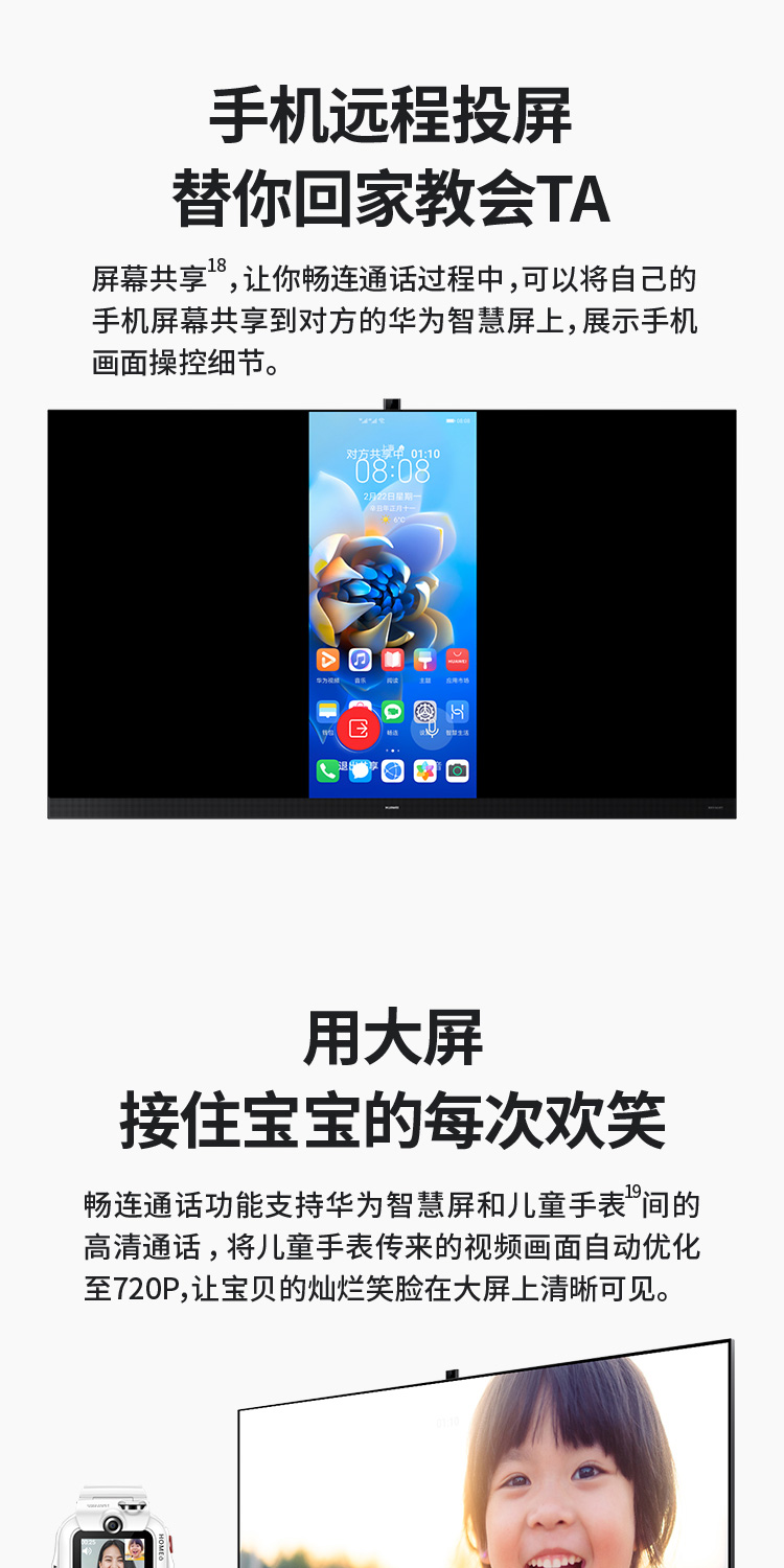 华为智慧屏 V 85 2021款 85英寸超薄全面屏AI摄像头4K液晶游戏电视 帝瓦雷影院声场 鸿蒙HarmonyOS HD85THAA 黑色