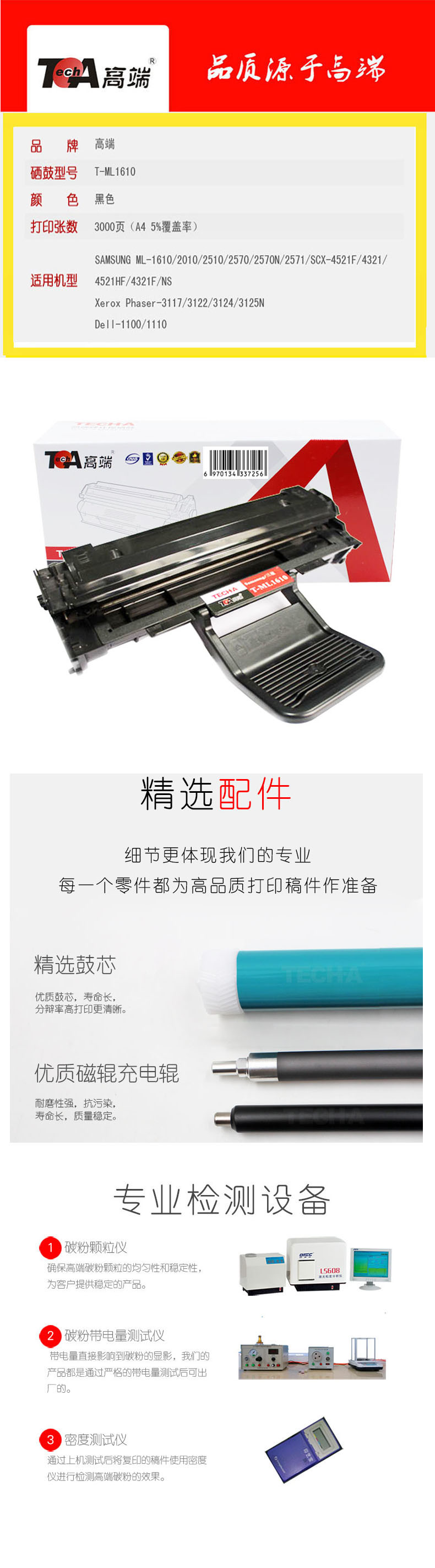 高端TECH-A T-ML1610碳粉盒适用三星2010/2510/2570打印机SCX-4521F施乐3117硒鼓3122墨粉盒Dell 1100/1110 黑色
