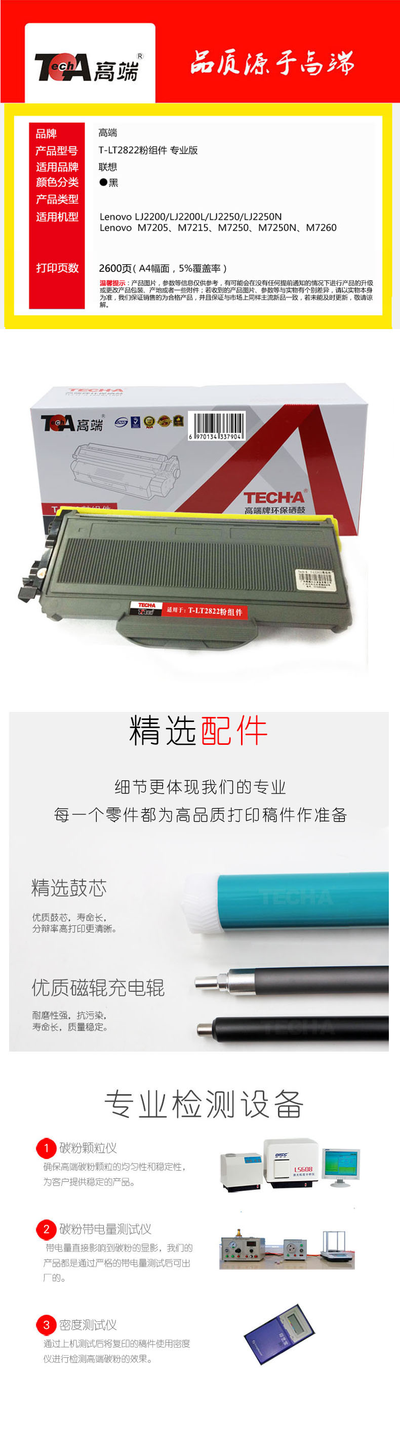 高端(TECH-A)T-LT2822 粉盒 适用联想M7205粉盒 LJ2200L墨盒M7250N打印机硒鼓M7260 黑色