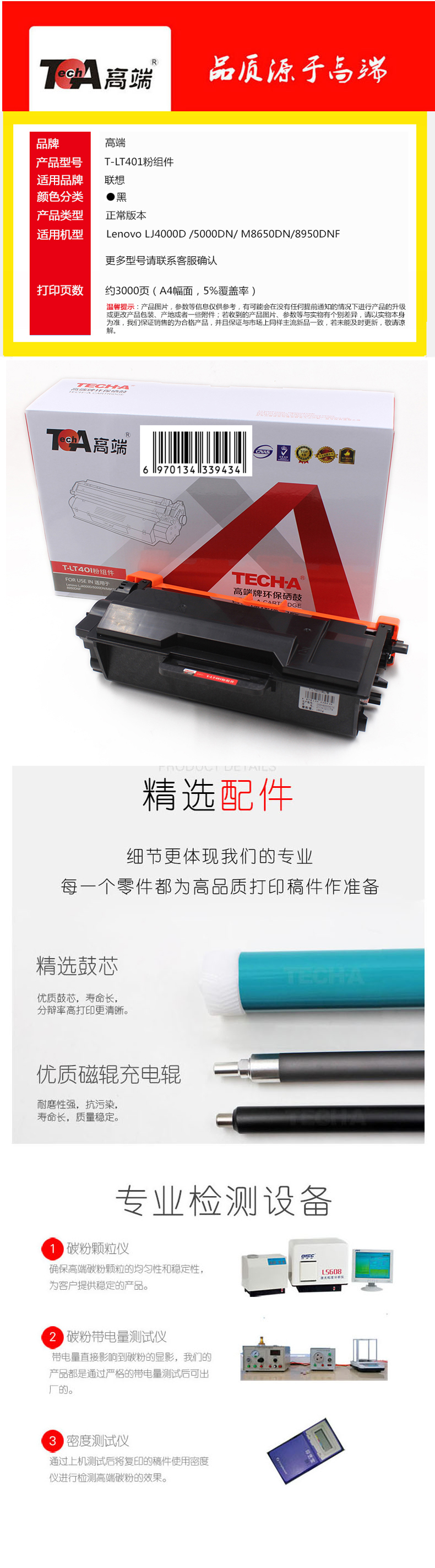 高端 TECH-A T-LT401粉盒适用联想LT401粉盒LD401碳粉盒Lenovo LJ4000D /5000DN M8650DN 黑色