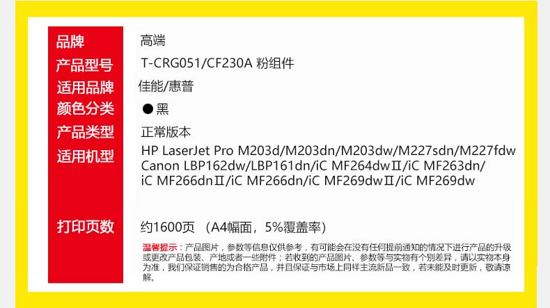 高端T-CRG051/CF230A粉组件标准版适用惠普M203DW打印机227FDW 203DN 支 黑色