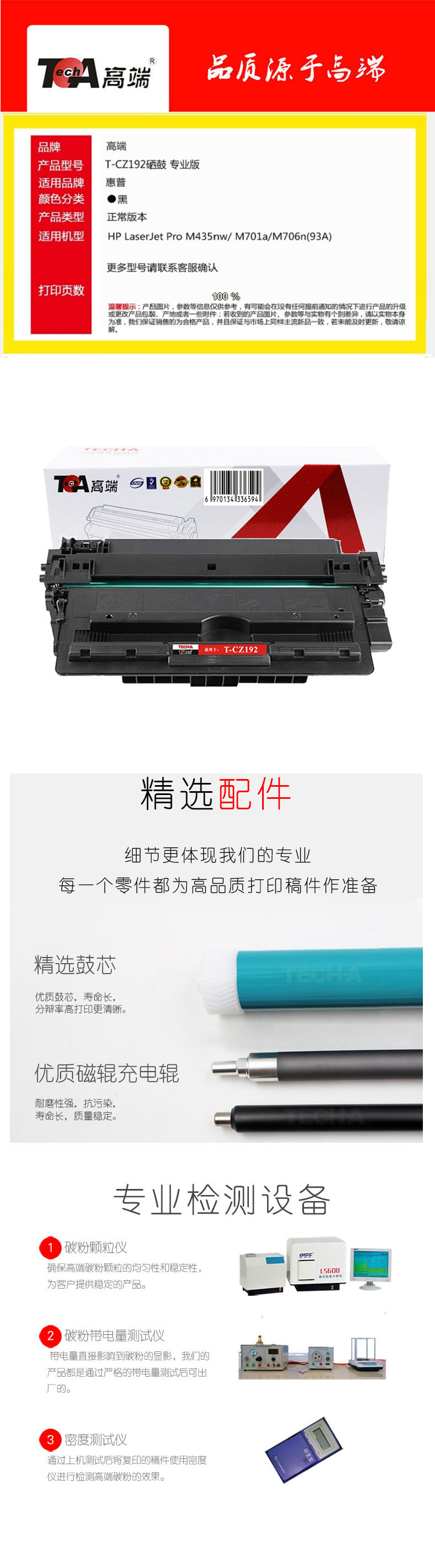 高端TECH-A T-CZ192硒鼓适用HP LaserJet Pro M435nw打印机M701a碳粉盒M706n墨粉盒93A 黑色