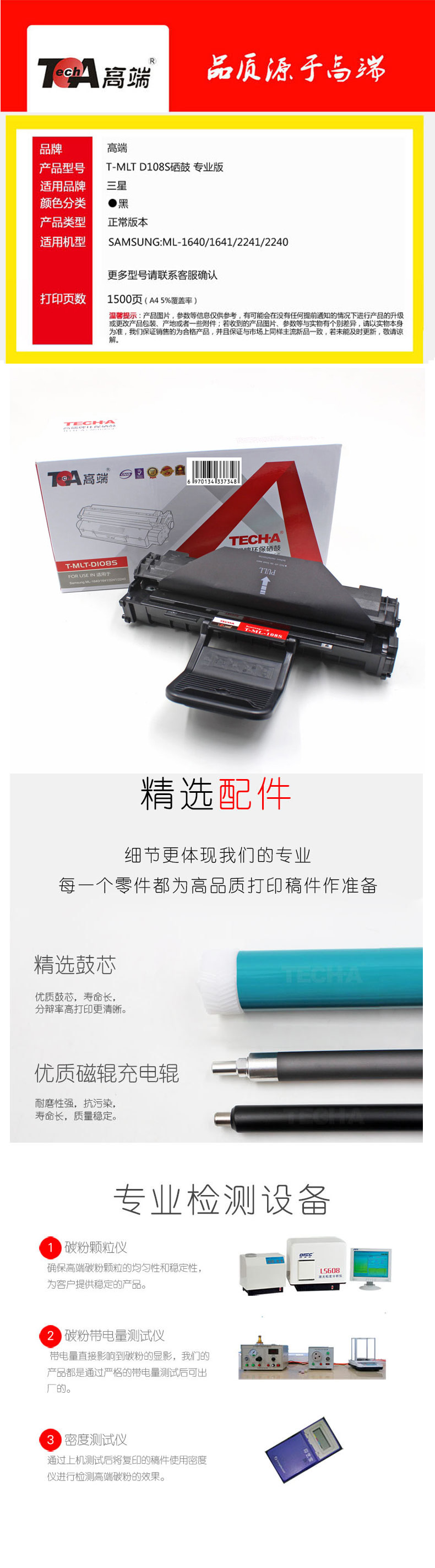 高端(TECH-A)T-MLT D108S 硒鼓 适用三星MLT-D108S硒鼓 ML-1640 1641 2240 2241硒鼓 黑色