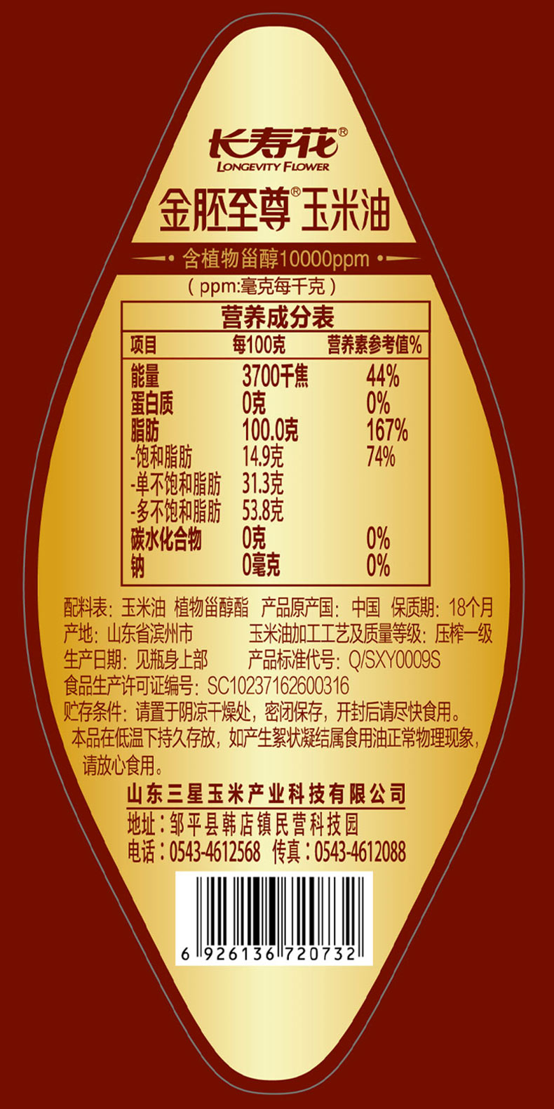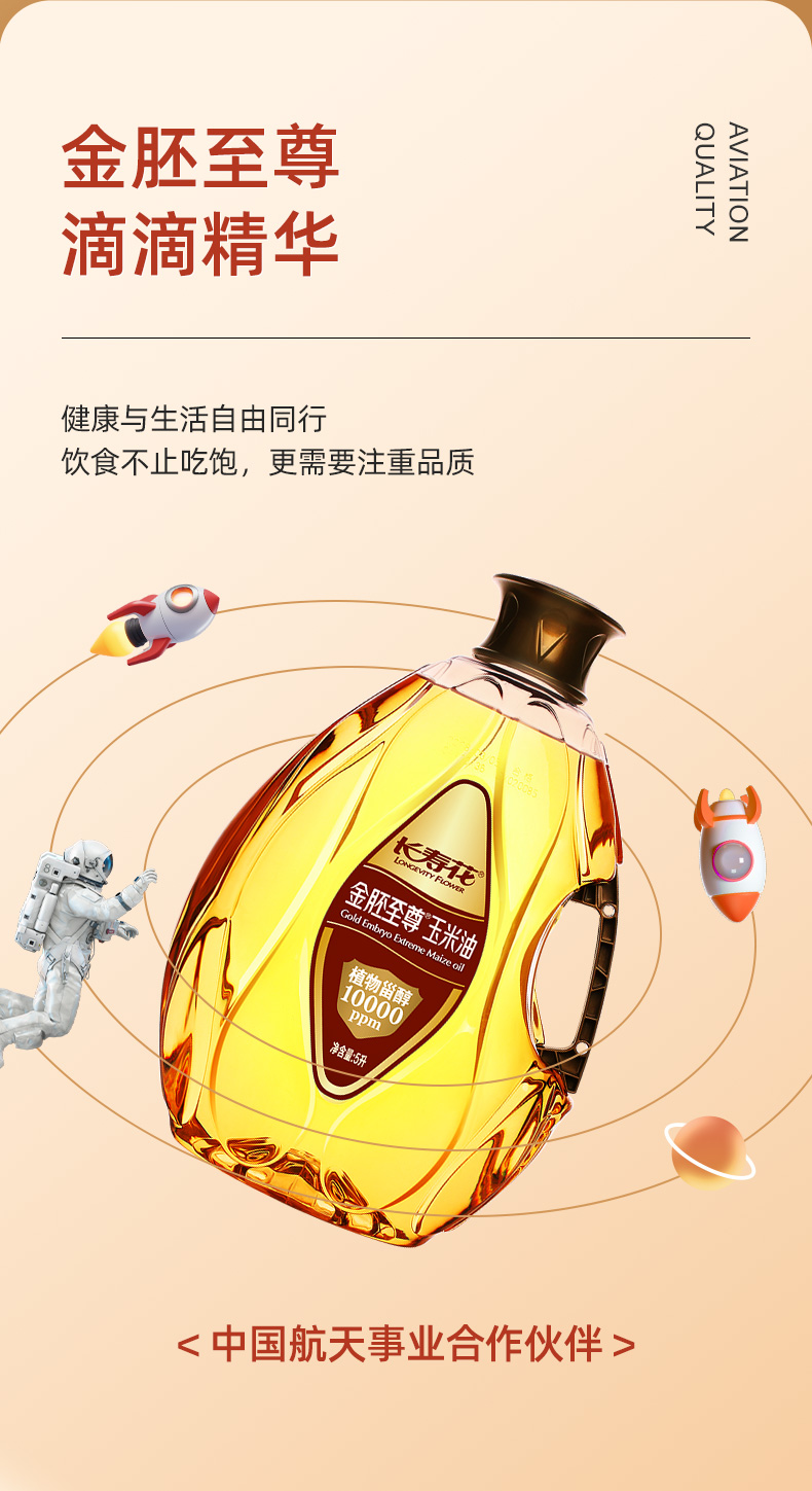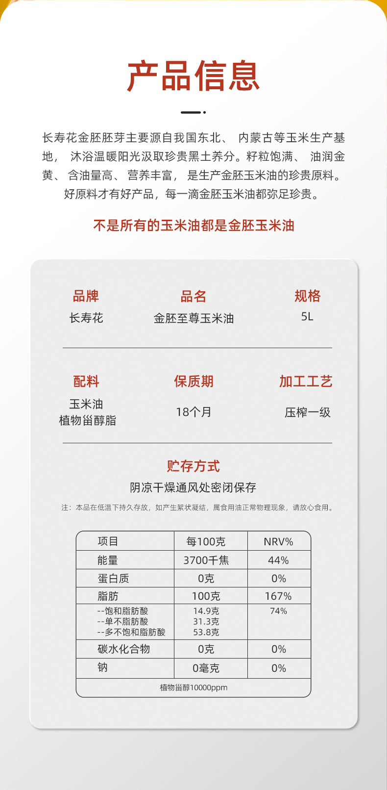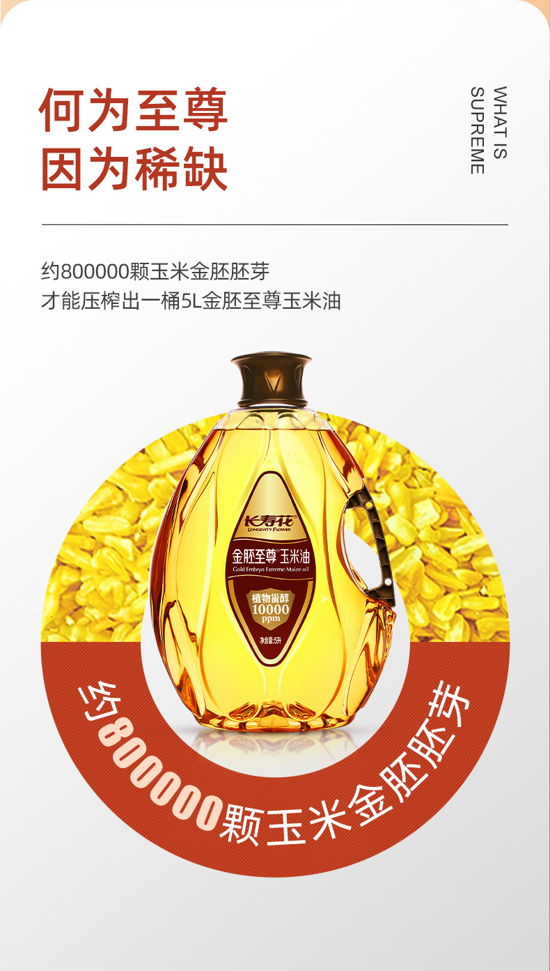 长寿花 金胚至尊玉米油 5L 食用油 压榨一级 桶