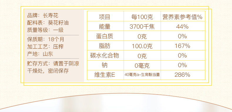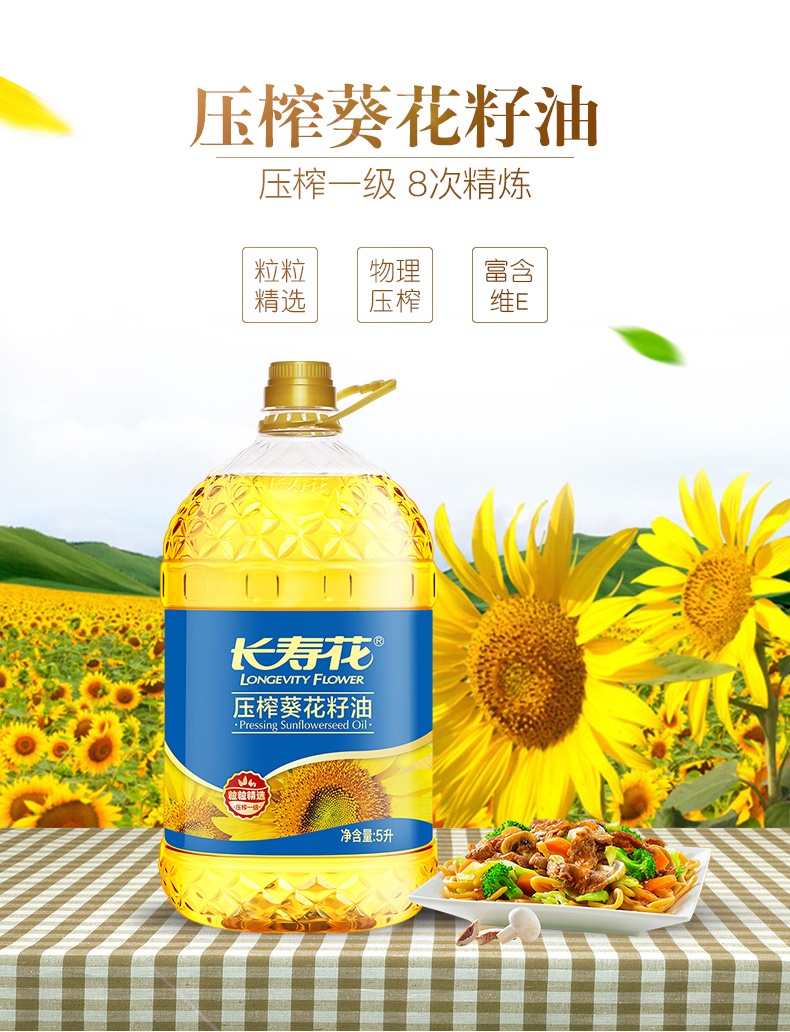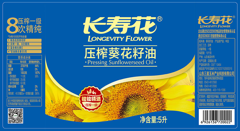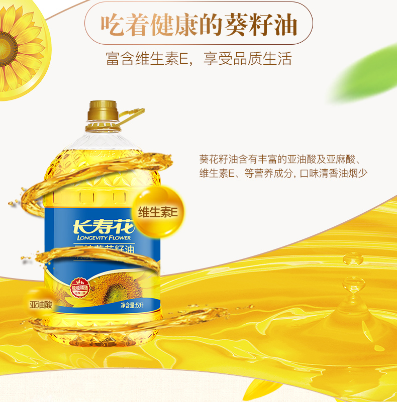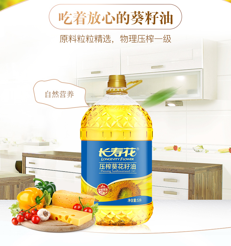 长寿花葵花籽油食用油压榨一级5L单位:桶