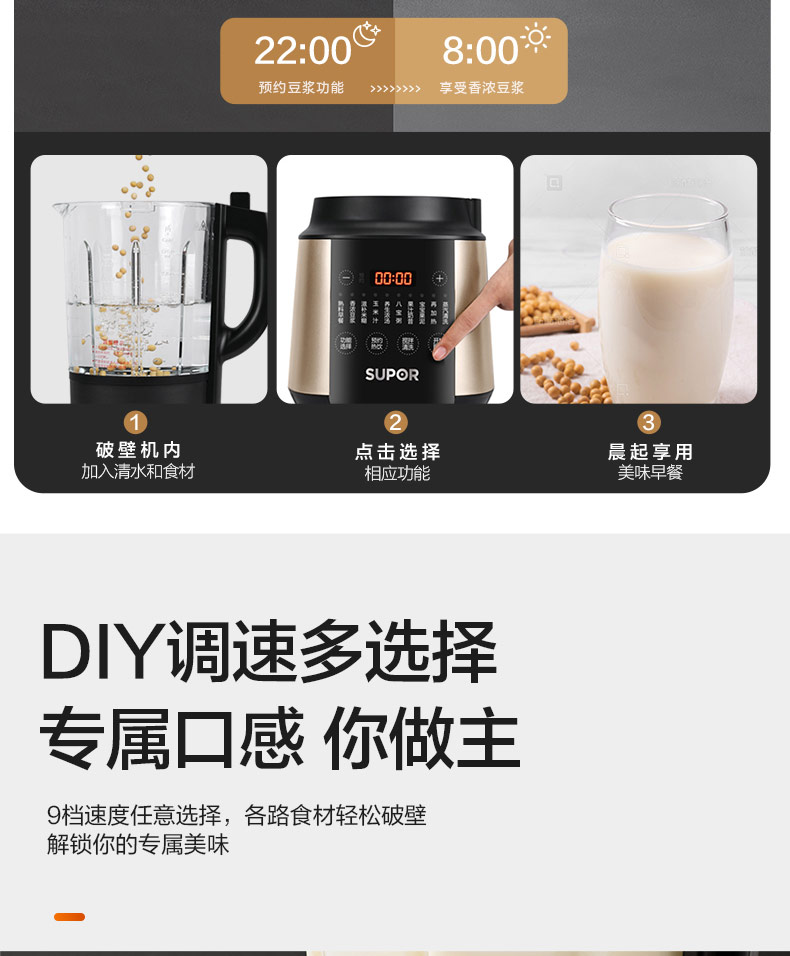 苏泊尔 SUPOR破壁机 家用智能预约加热破壁料理机 SP503A单位:个 黑色