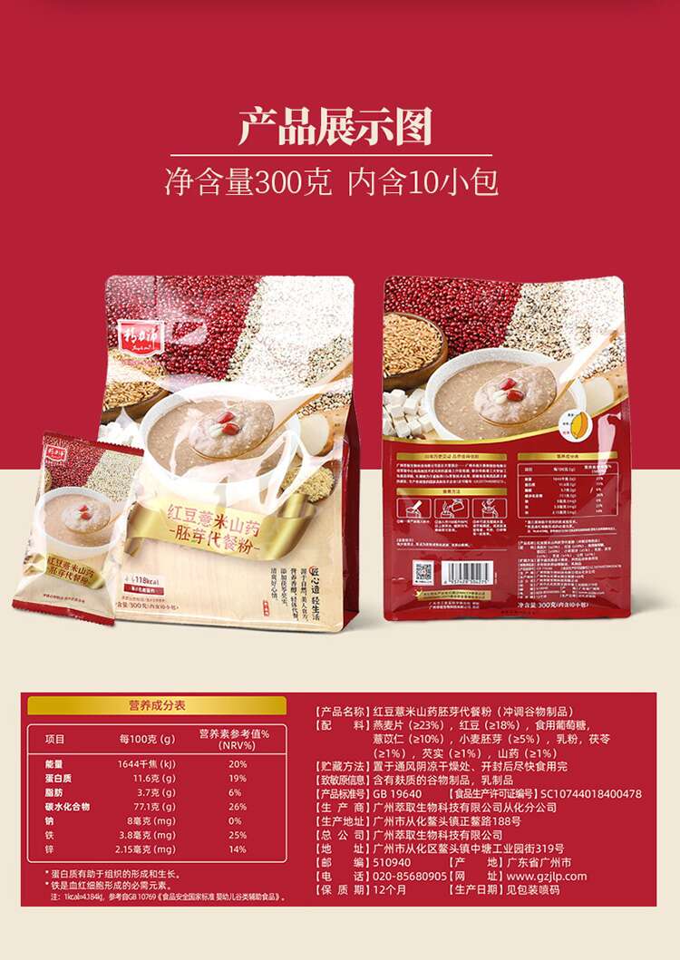 精力沛红豆薏米山药胚芽代餐粉300g*2袋(内含20小包) 300g*2