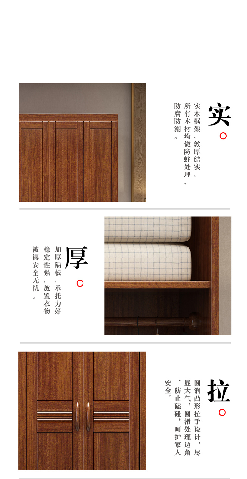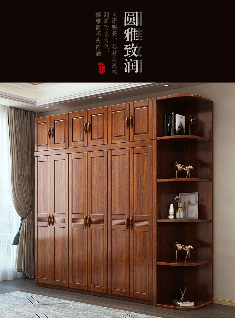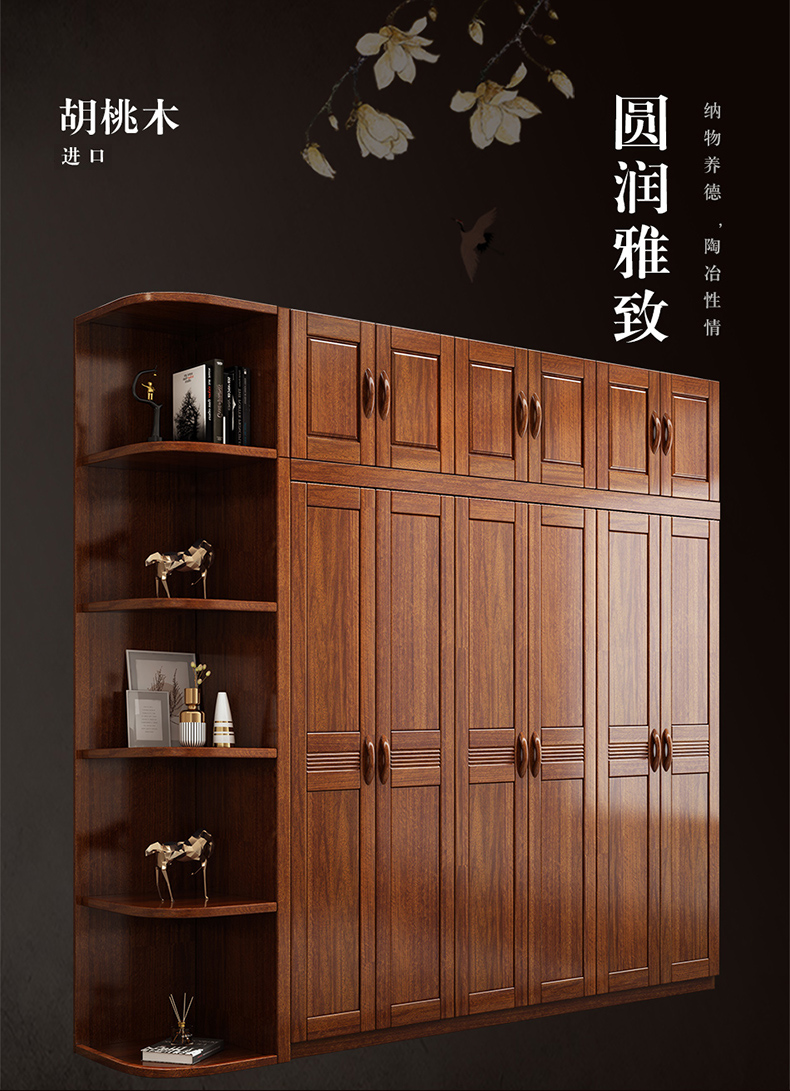 维仕蓝 实木衣柜组合胡桃木现代简约卧室家用收纳储物衣橱柜子 四门衣柜 棕色