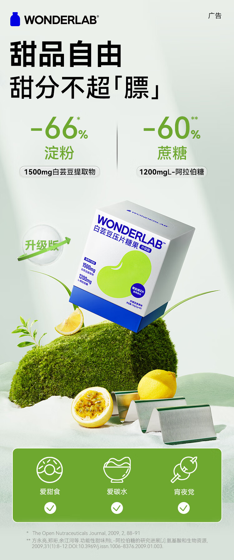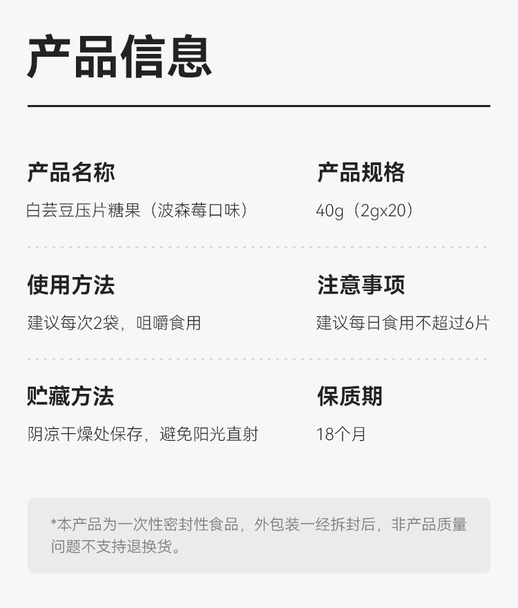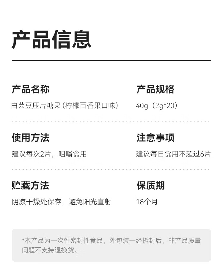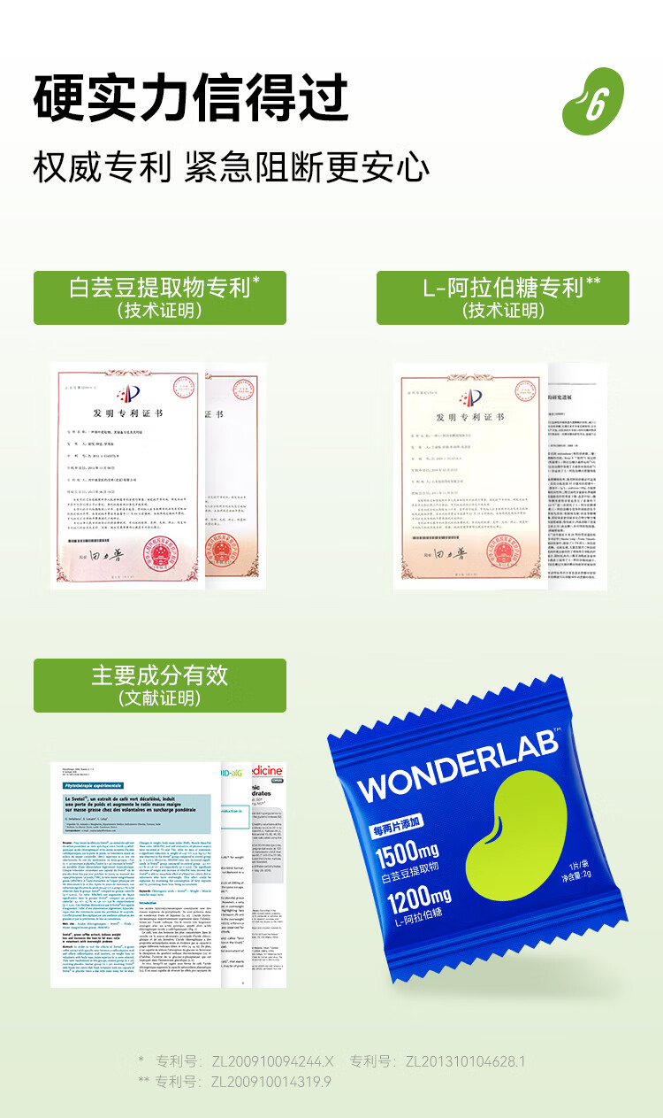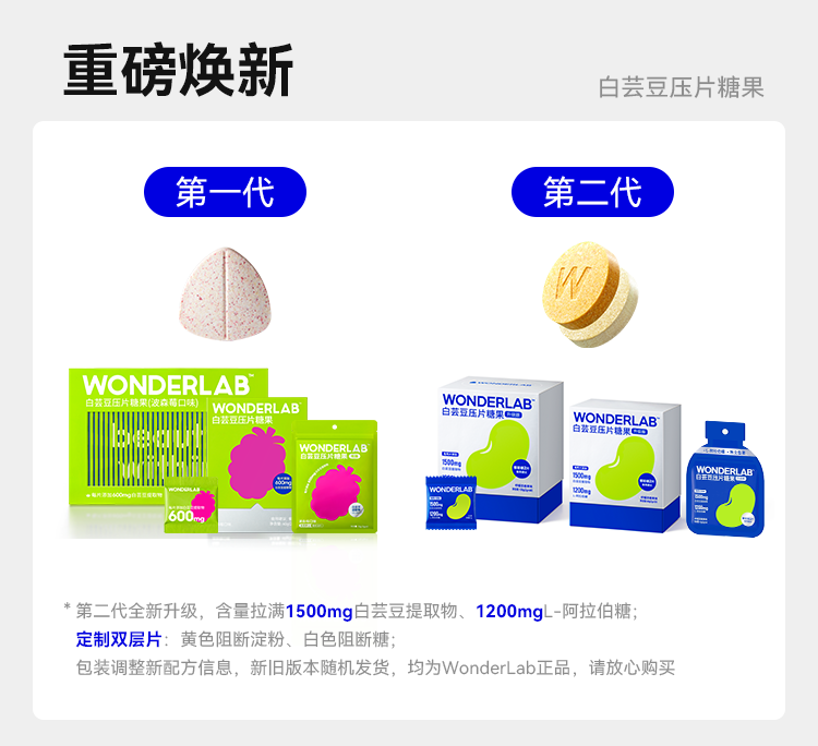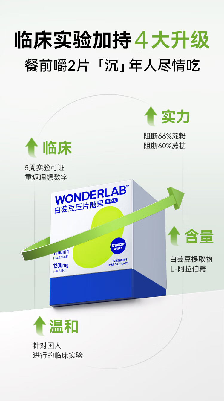 WonderLab白芸豆压片糖果袋装2g*20粒 清新色
