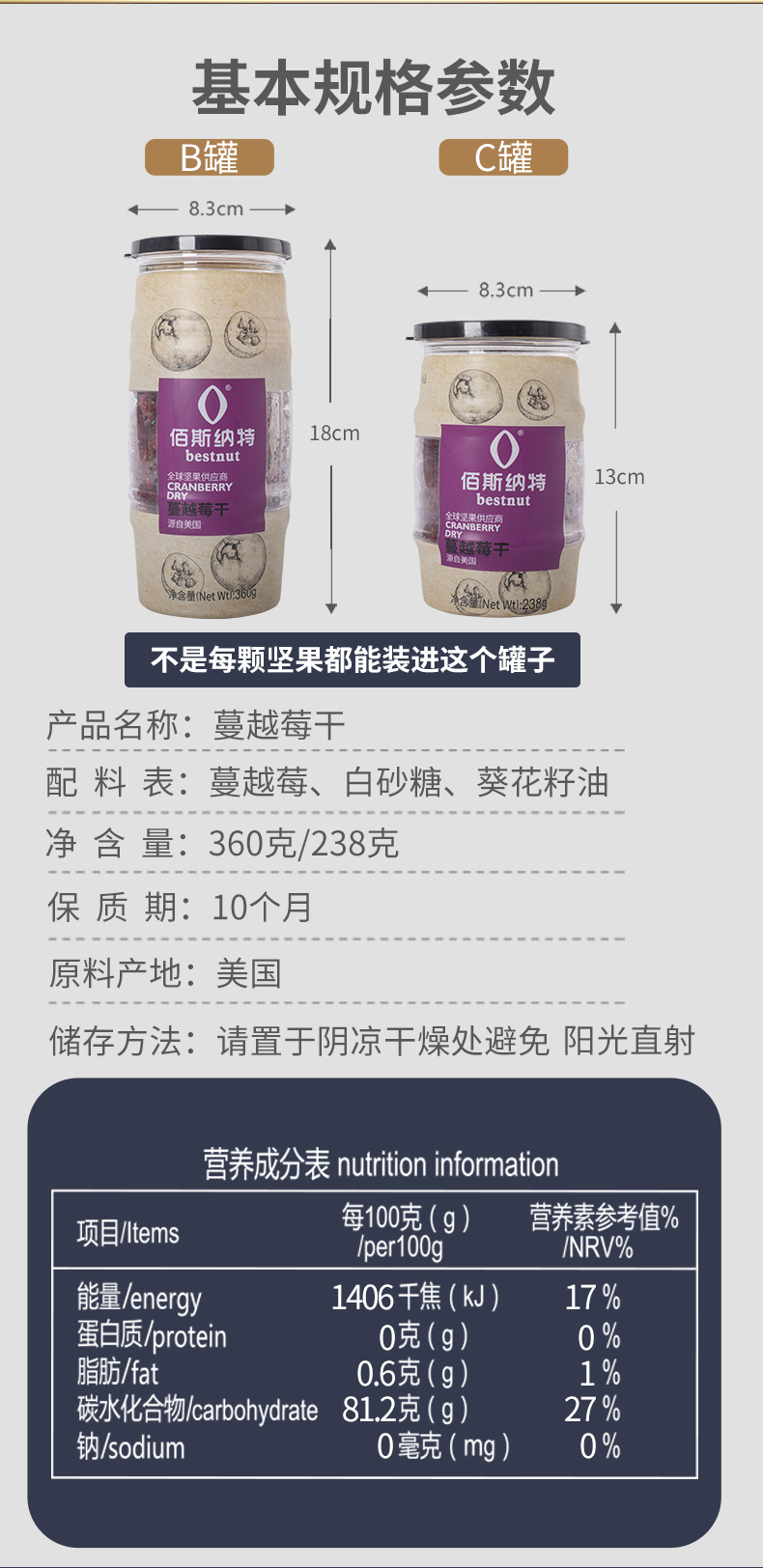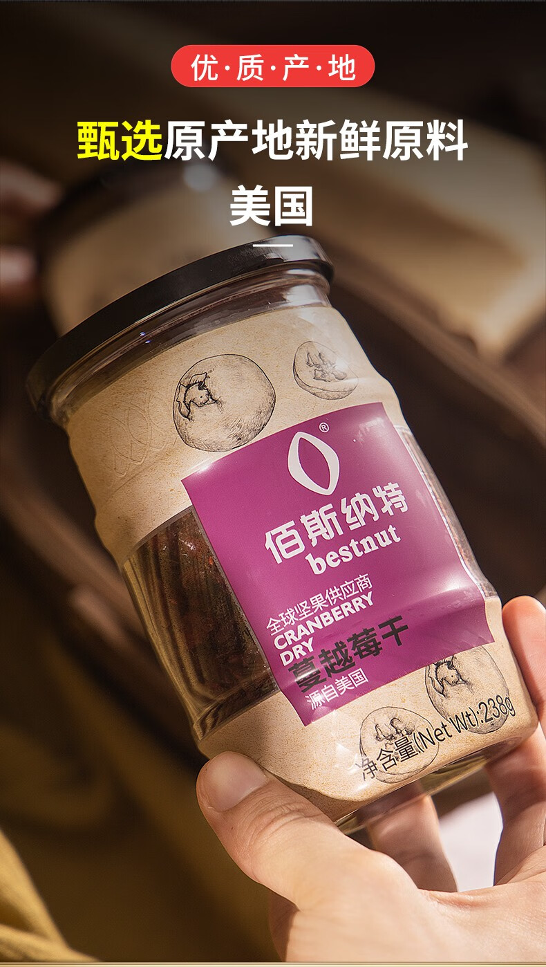 佰斯纳特(bestnut) 蔓越莓干 美国进口蔓越莓干大颗果肉罐装水果蜜饯果干休闲零食小吃特产 【日期新鲜】C罐/238g【美国进口蔓越莓原材料】