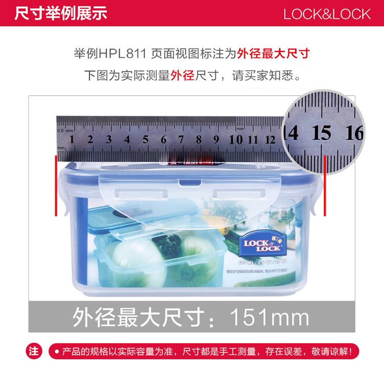 乐扣乐扣(LOCK&LOCK)塑料保鲜盒6件套HPL818S001(430ml*1 1000ml*1 1300ml*1 600ml*1 1900ml*1 860ml*1) 无色