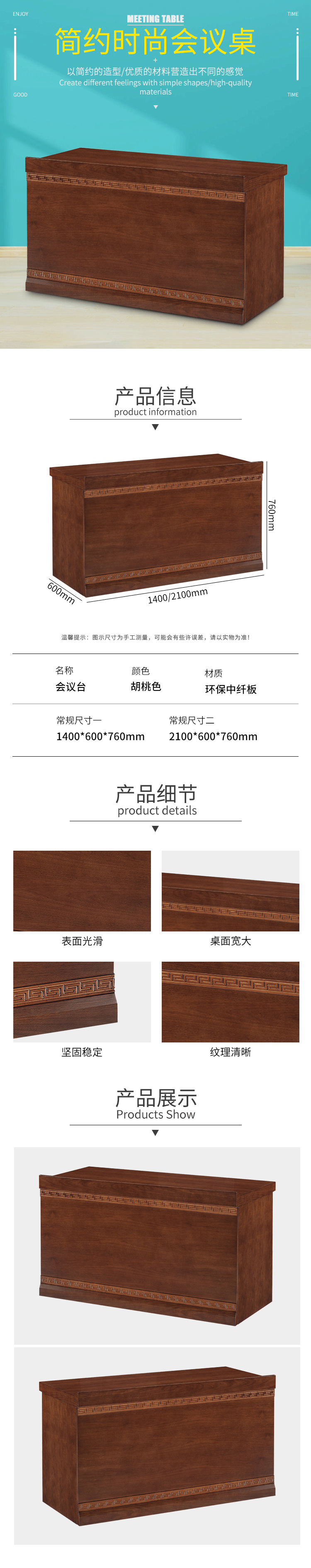企诺 会议桌长条桌员工培训桌 QNC102SJ-H1407H 胡桃色