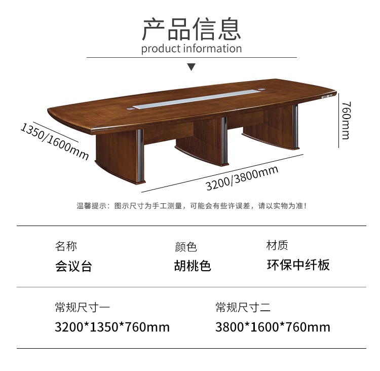 企诺 定制油漆大型会议桌 QNC101SJ-H3801H 胡桃色