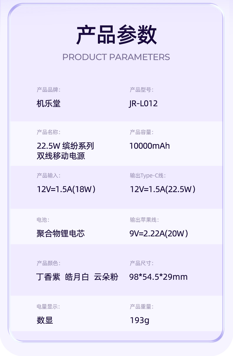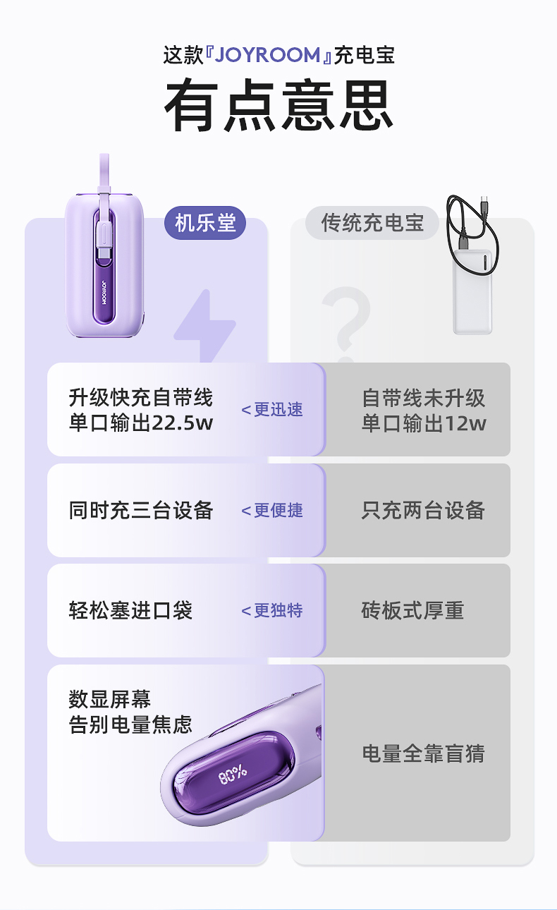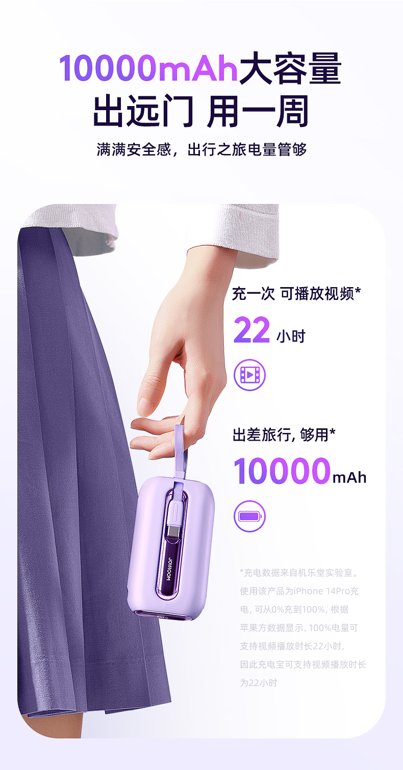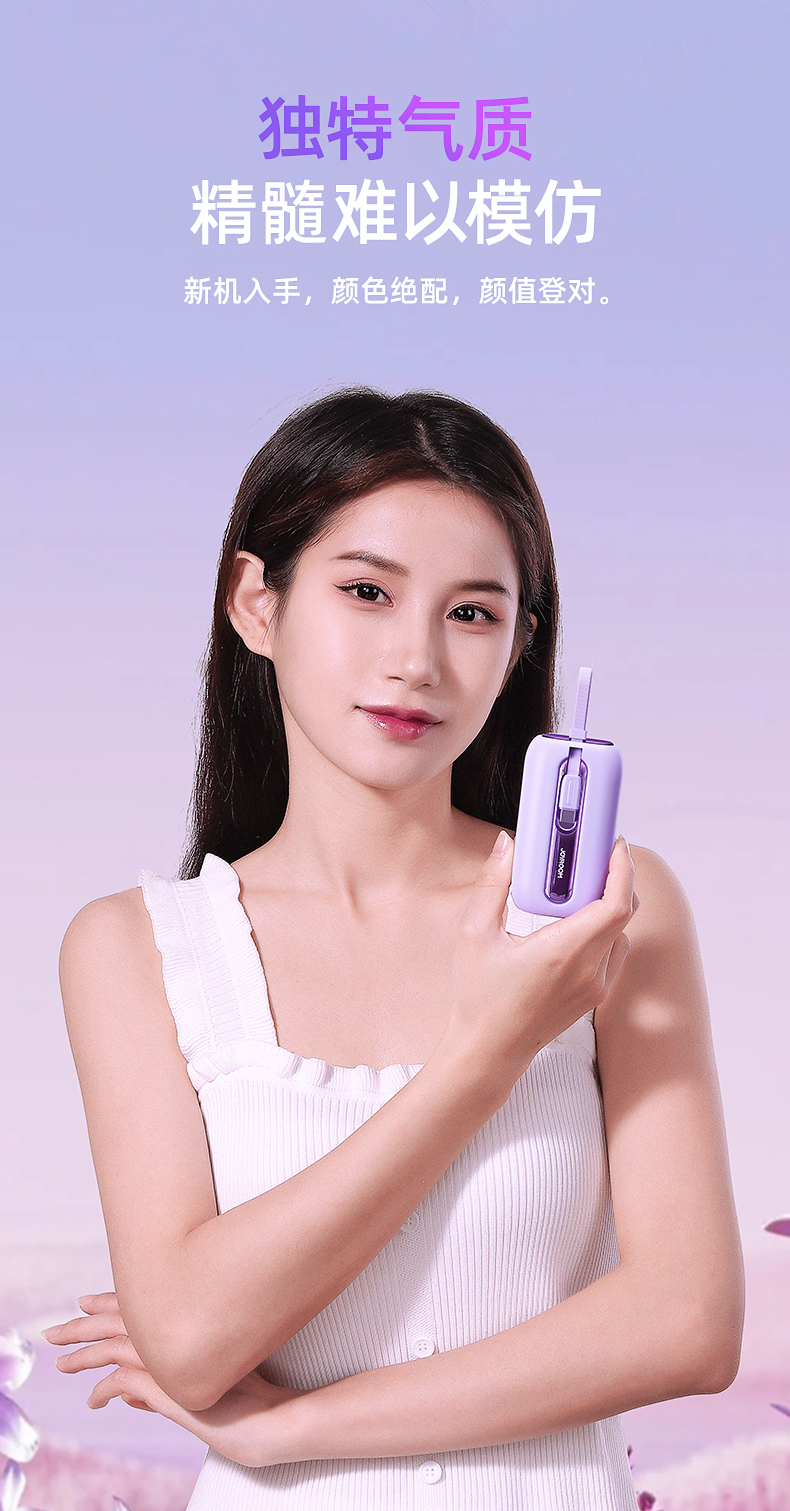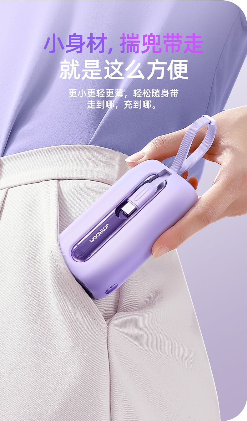 机乐堂22.5Wmini自带双线移动电源JR-L012(单位:个) 紫色