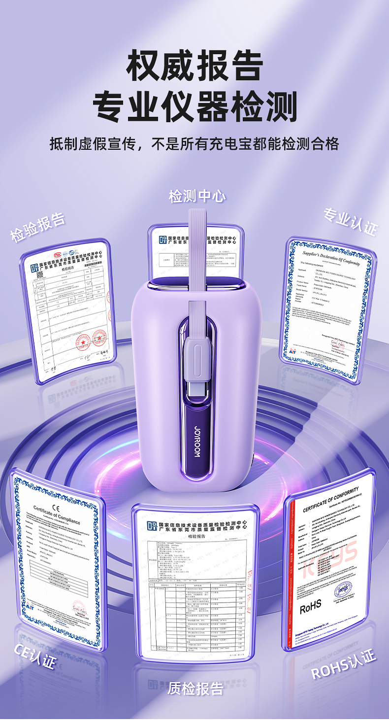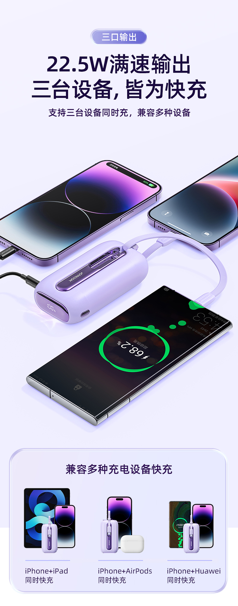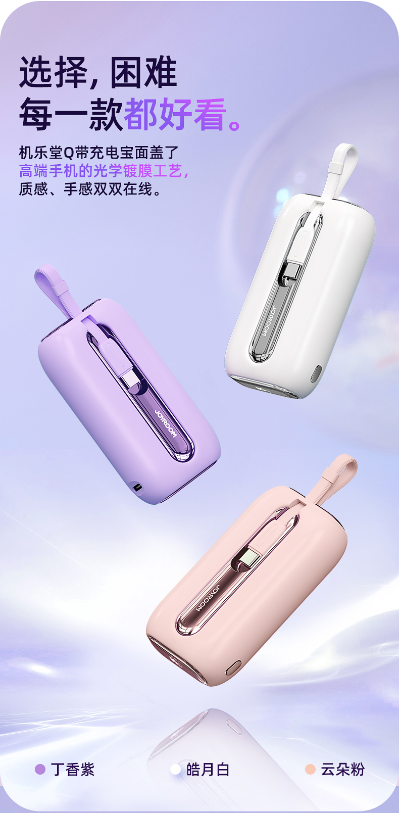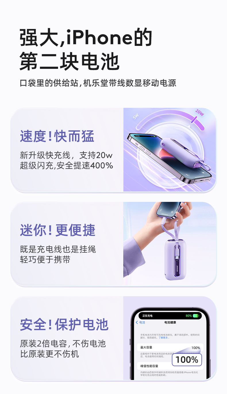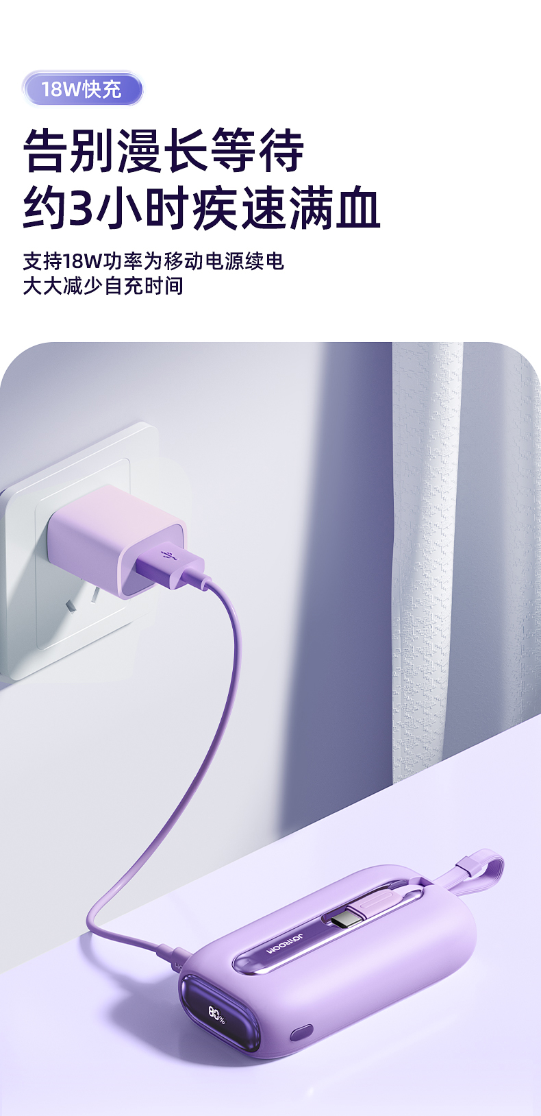 机乐堂22.5Wmini自带双线移动电源JR-L012(单位:个) 紫色