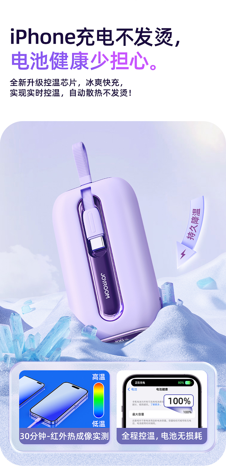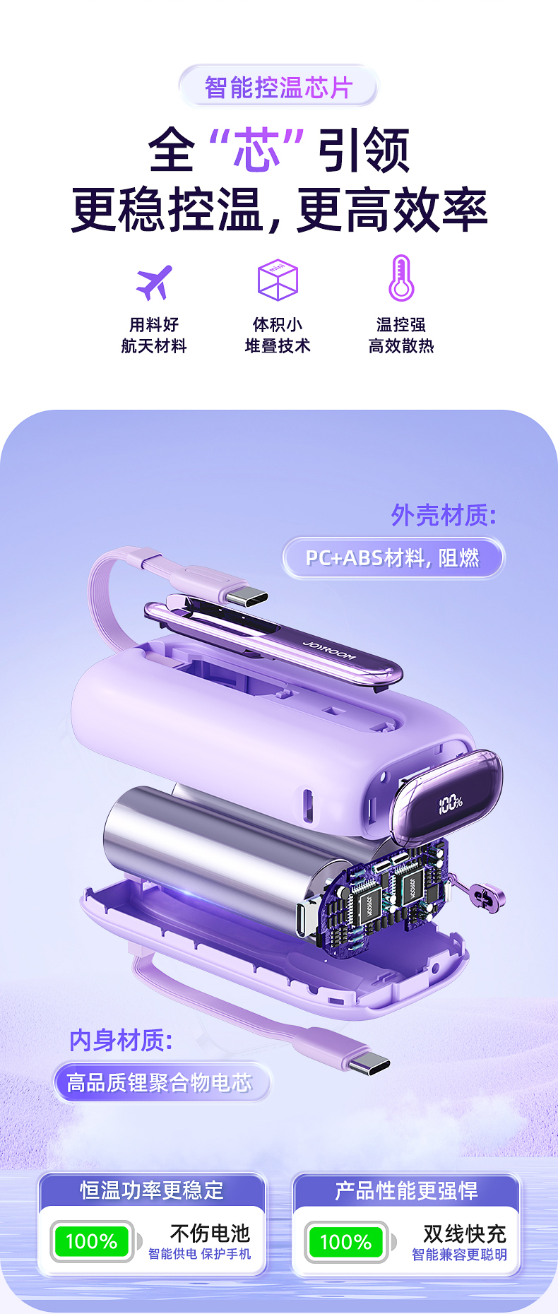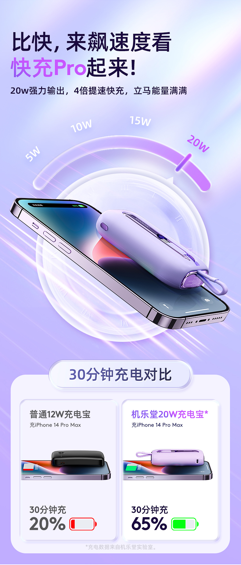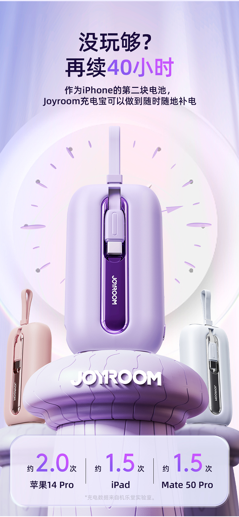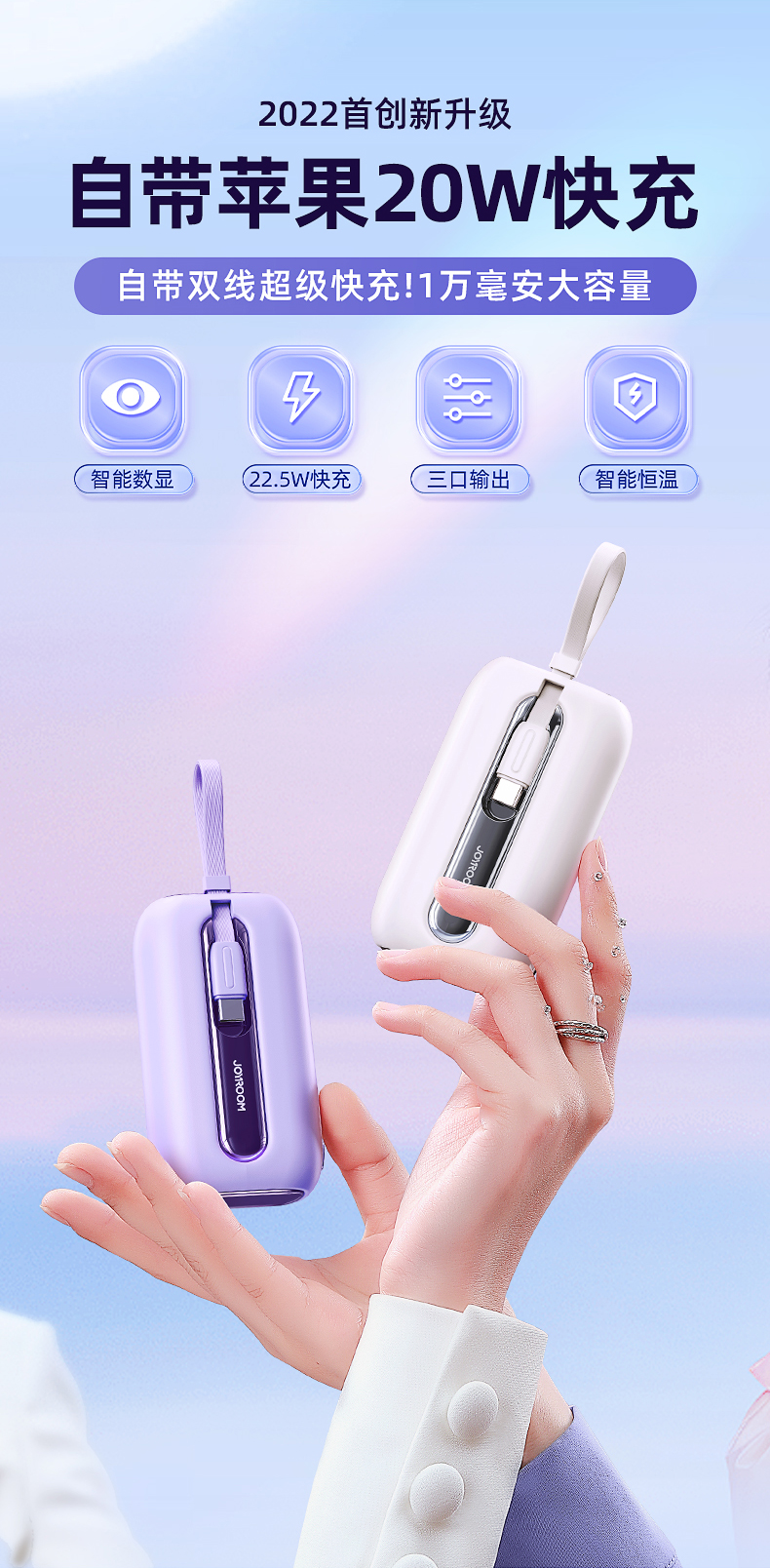 机乐堂22.5Wmini自带双线移动电源JR-L012(单位:个) 紫色