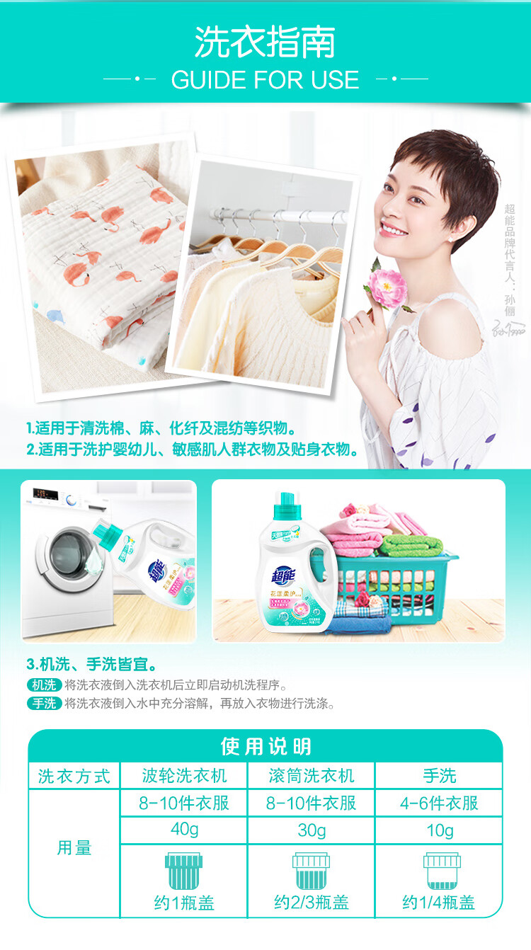 超能花漾柔护洗衣液1kg 白色