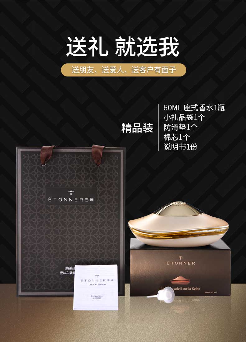途雅(ETONNER)汽车香水 车载座式香水 车饰摆件 香水补充液 古龙香型 塞纳日出(豪华装)60ml+50ml补充液(金色瓶)/盒