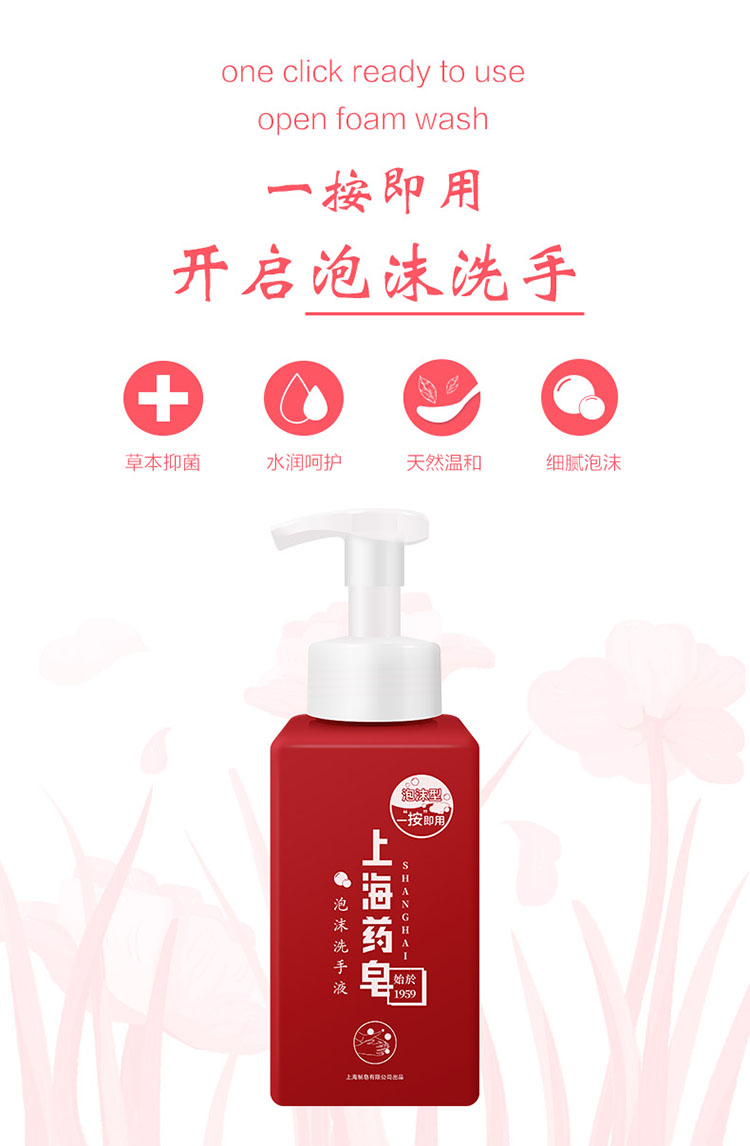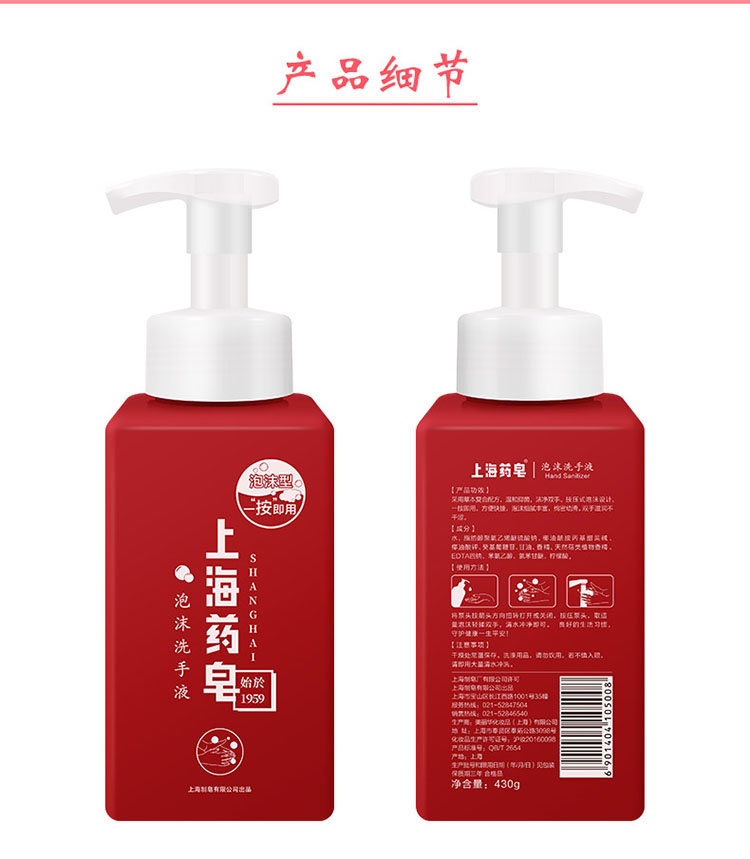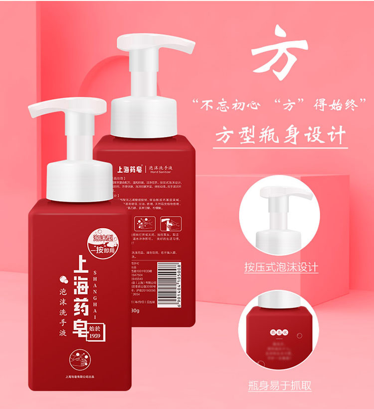 上海药皂泡沫洗手液430g*2 抑菌洗手瓶装按压家用办公室通用 泡沫洗手液