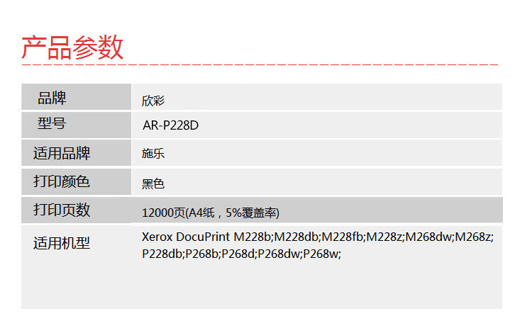 欣彩AR-P228D鼓架专业版硒鼓 适用施乐CT351056 P228 P268 P268d P268dw M228b M228db 单位:支 起订量1支 黑色