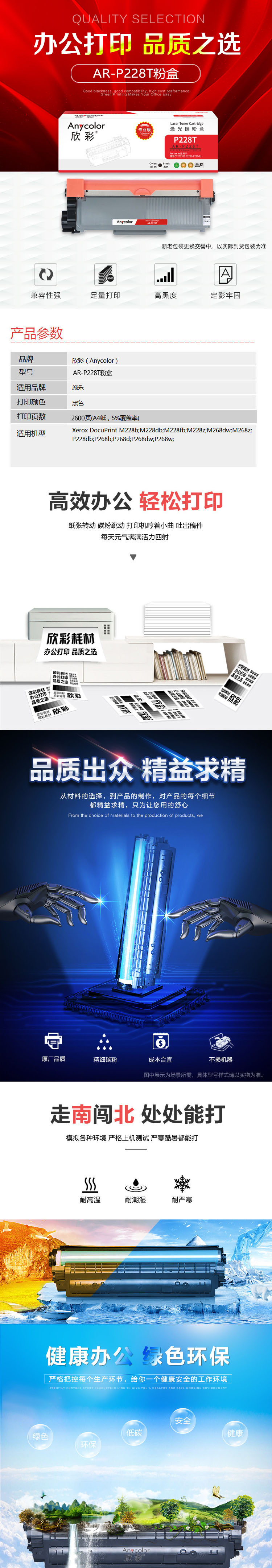 欣彩AR-P228T粉盒专业版2.6K 适用施乐CT202331 P228 P268 P268d P268dw M228b M228db 单位:支 起订量1支 黑色