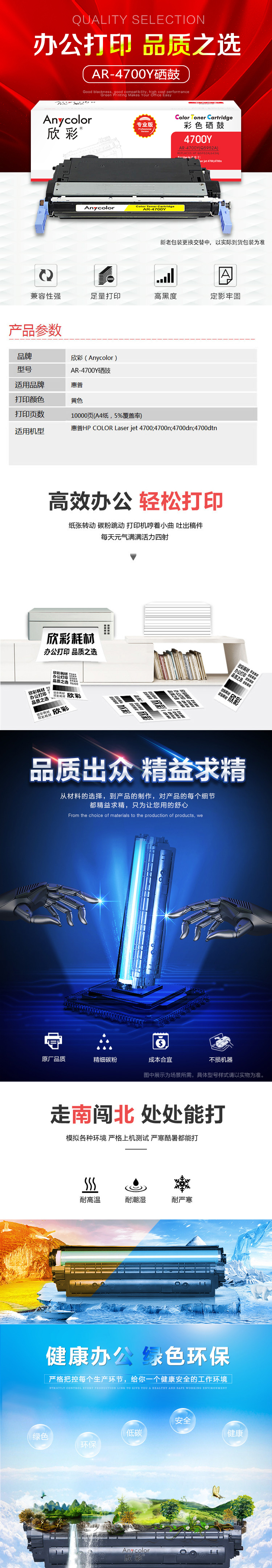 欣彩(Anycolor) AR-4700Y 专业版 10000页 适用惠普4700n 硒鼓 1.00 只/支 (计价单位:支) 黄色