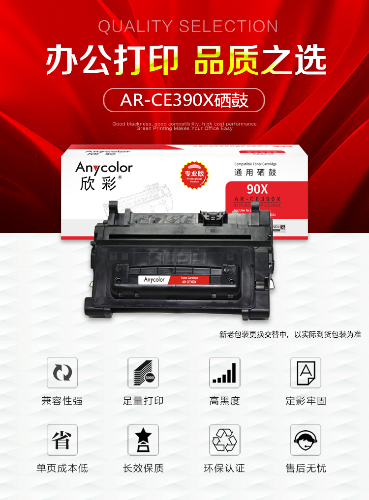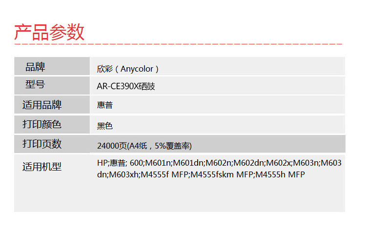欣彩(Anycolor)CE390X硒鼓(专业版)AR-CE390X大容量 90X适用惠普HP M4555 M4555F M4555H M601 M602 M603 黑色