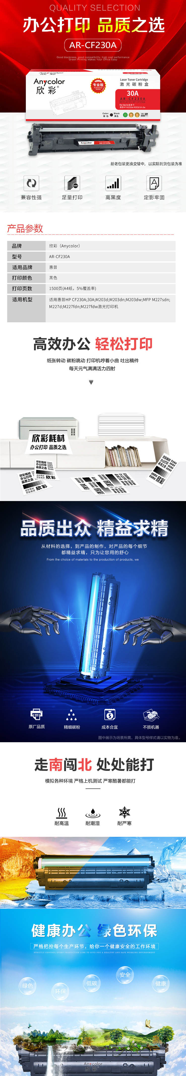欣彩AR-CF230A粉盒专业版带芯片 适用惠普CF230A 30A M203d M203dn M203dw MFP M227sdn 单位:支 起订量1支 黑色