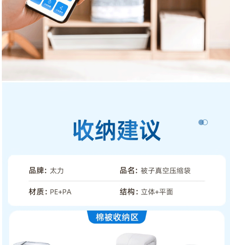 太力 AY939 2特大立体4中立体 加大加厚免抽气收纳袋 白色(单位:套)
