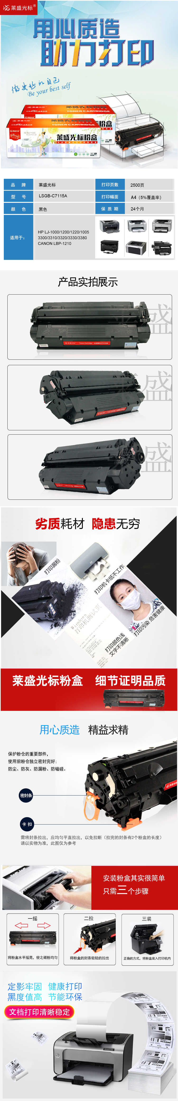 莱盛光标 LSGB-C7115A 约2500页 适用 HP LJ-1000/1200 硒鼓 1.00 只/支 (计价单位:支) 黑色