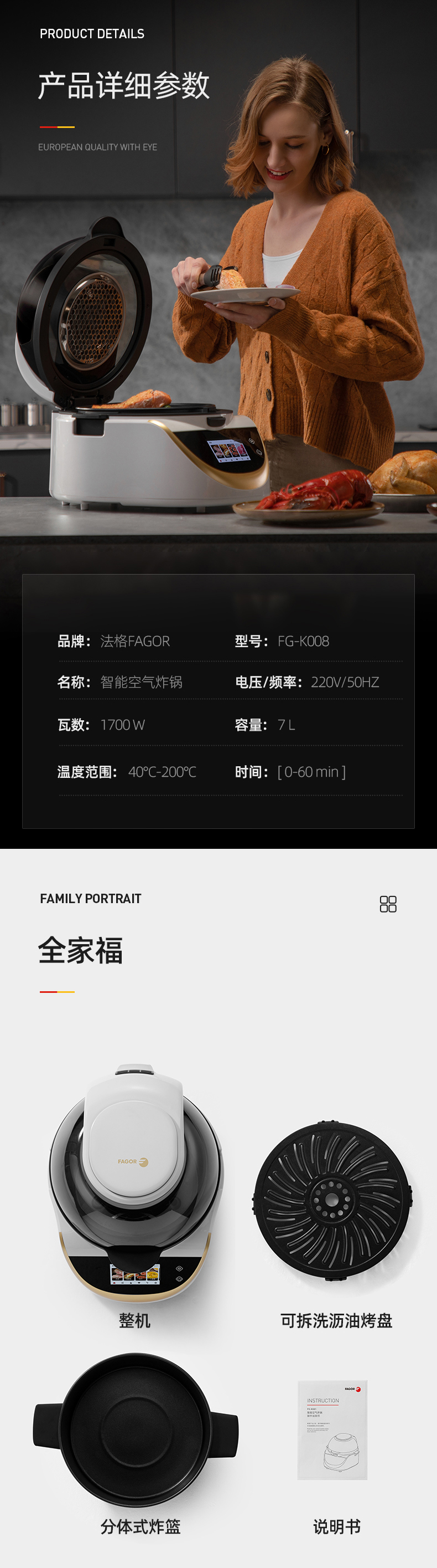 FAGOR法格 FG-K008W 7L智能厨房空气炸锅(单位/台) 本白色