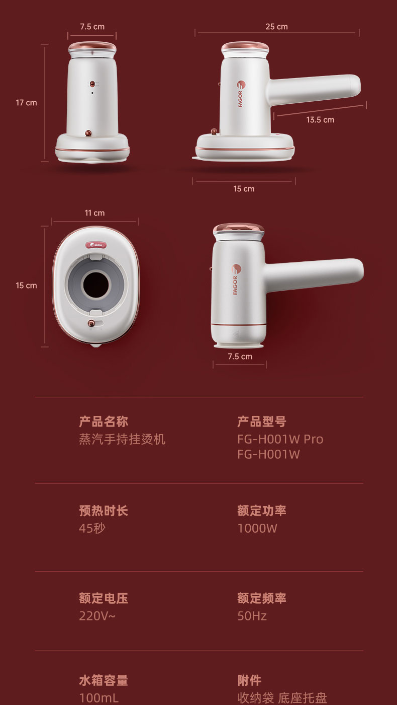 FAGOR法格 FG-H001W手持多功能便携挂烫机水箱100ML 单位/台 白色