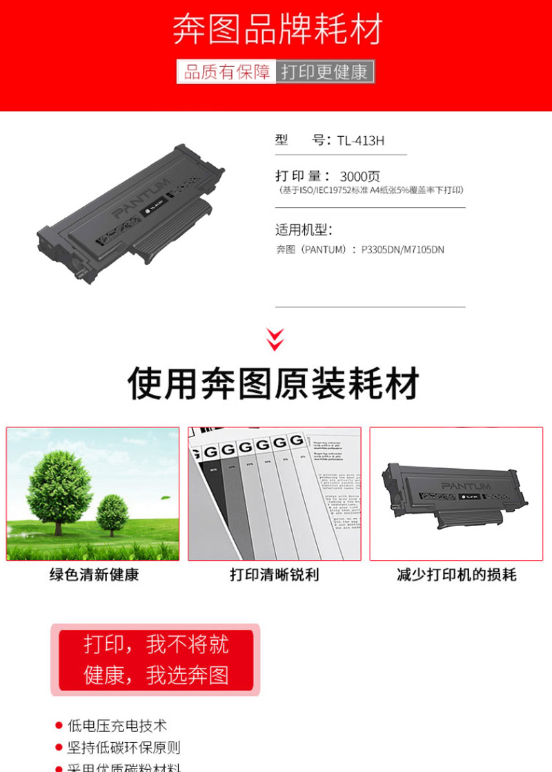 奔图(PANTUM) TL-413H 3000页 适用奔图P3305DN/M7105DN打印机 硒鼓 (计价单位:只) 黑色 黑色
