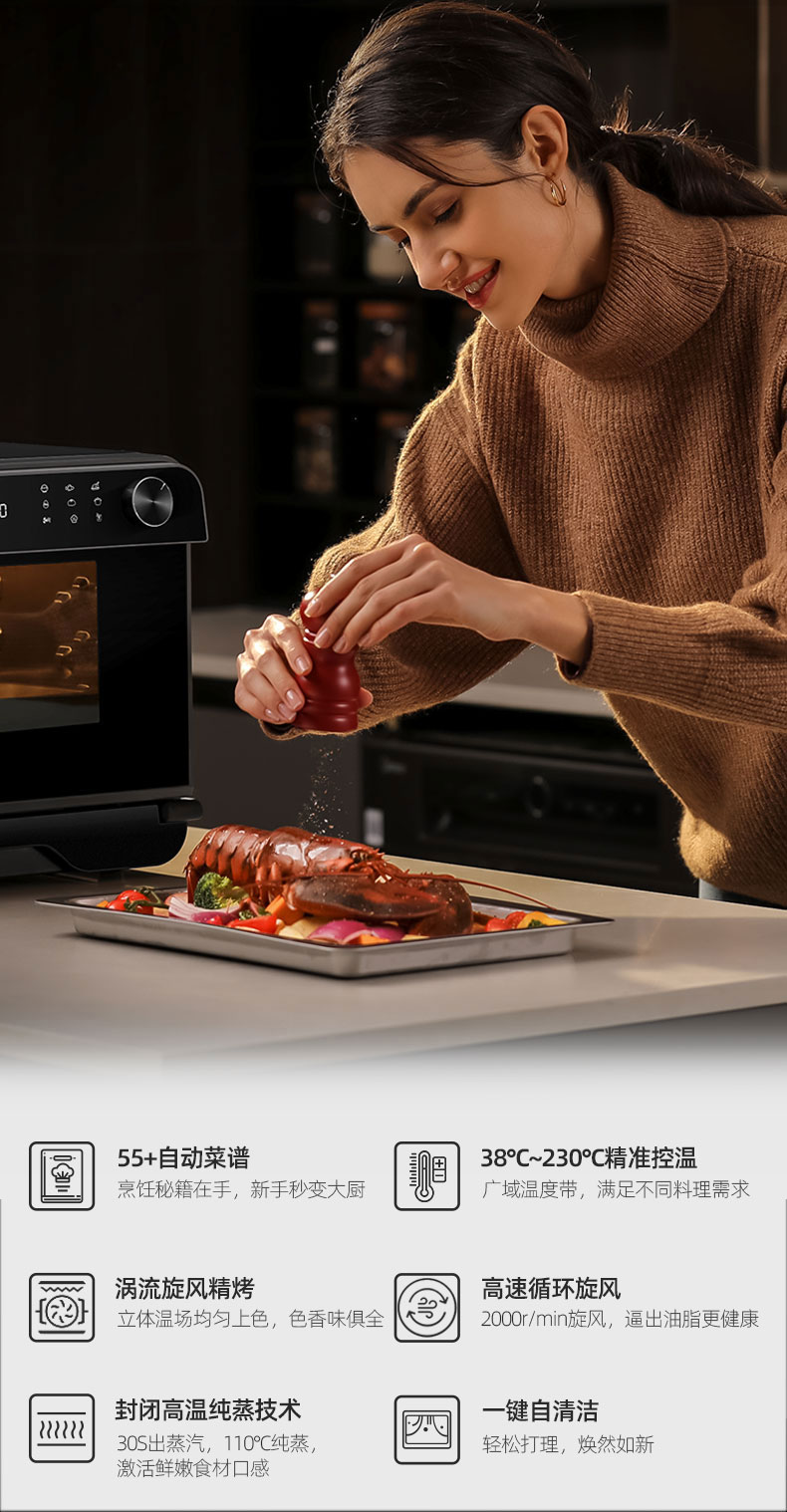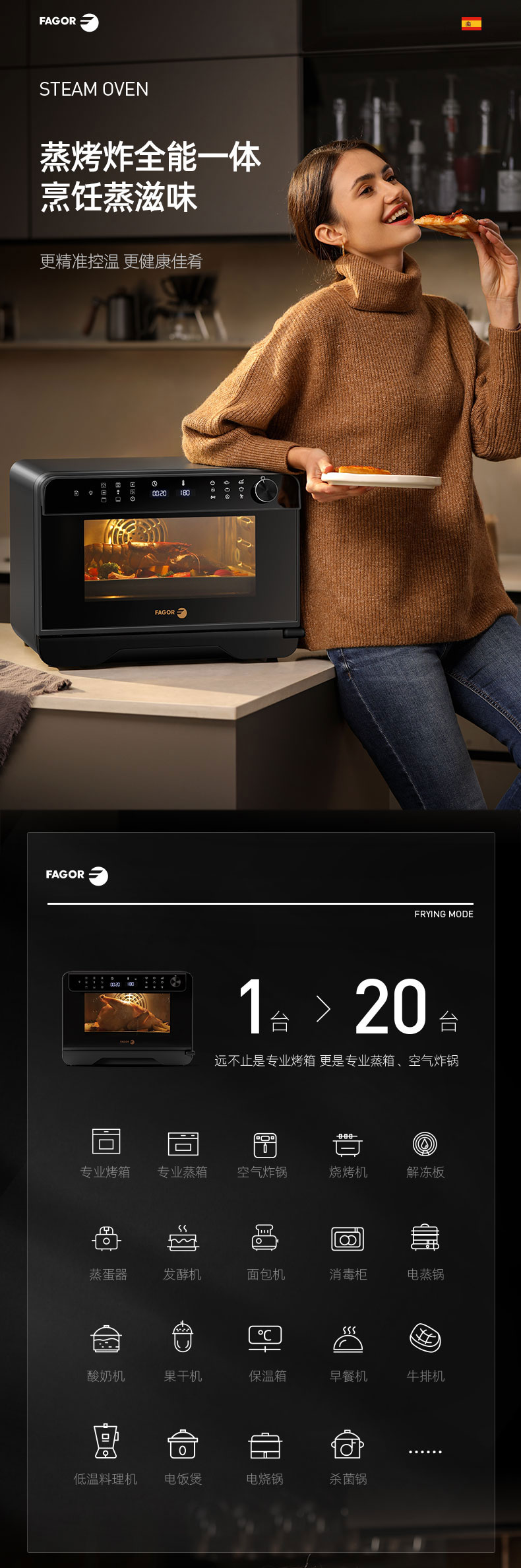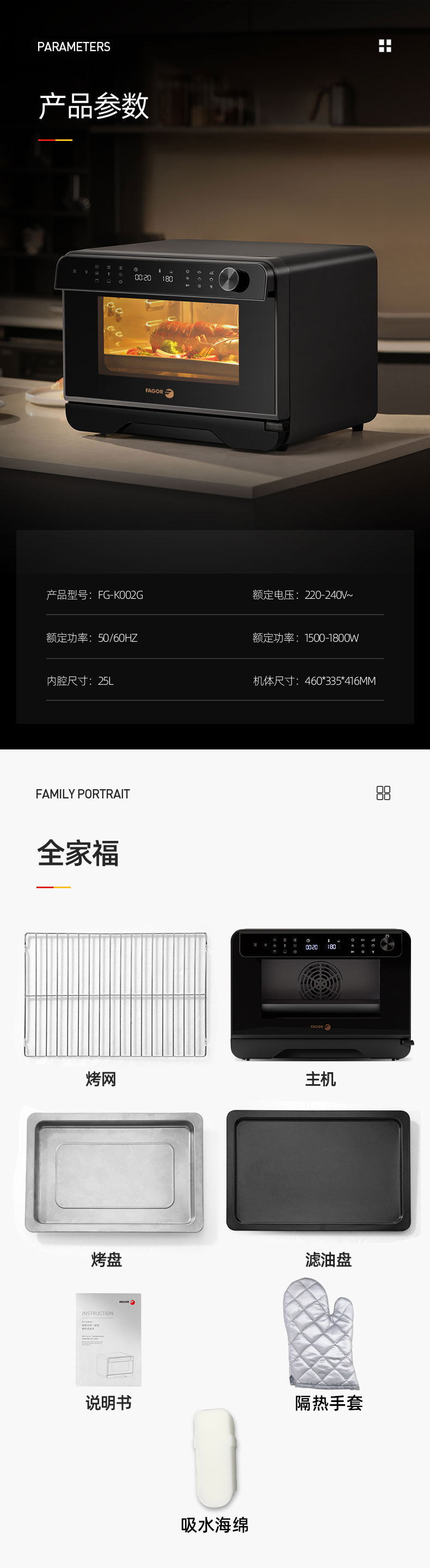 FAGOR法格 FG-K002G多功能智能蒸烤一体机1500W/25L 单位/台 深灰色