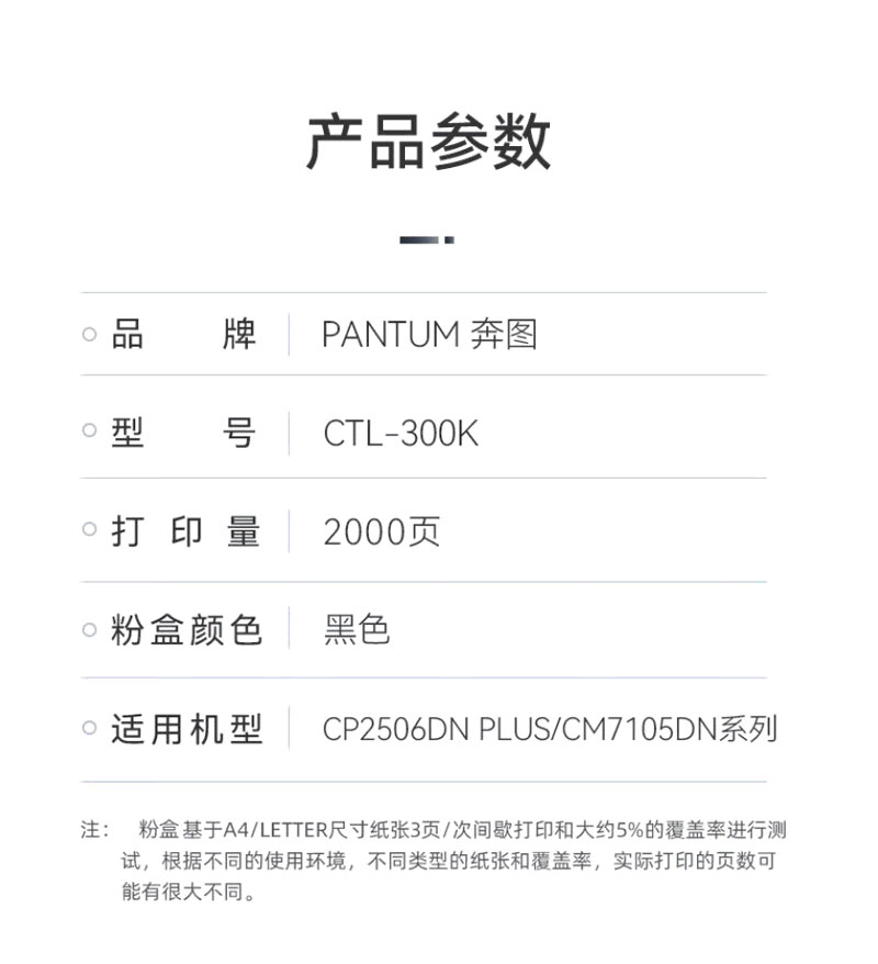 奔图(PANTUM) CTL-300K 打印量2000页 (适用CP2506DN PLUS/CM7105DN打印机) 粉盒 1.00 只/支 (计价单位:支) 黑色 黑色
