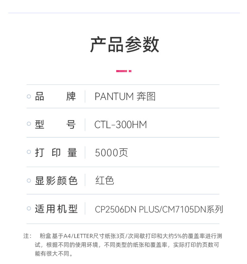 奔图(PANTUM) CTL-300HM 5000页 适用机型CP2506DN PLUS/CM7105DN 高容量原装粉盒 1.00 只/支 (计价单位:支) 品红/洋红 品红/洋红