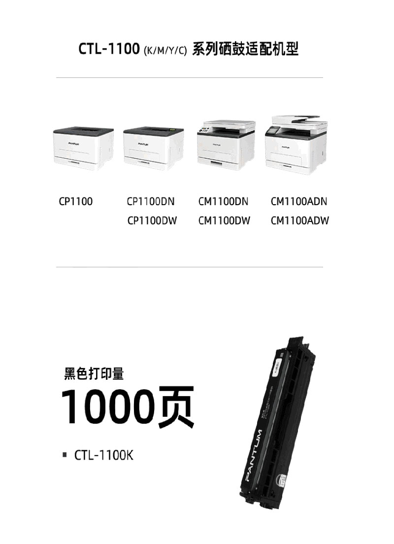 奔图(PANTUM) CTL-1100K 1000页 适用于CM1100DN/CM1100DW/CM1100ADN/CM1100ADW 黑色原装粉盒 1.00 只/支 (计价单位:支) 黑色 黑色