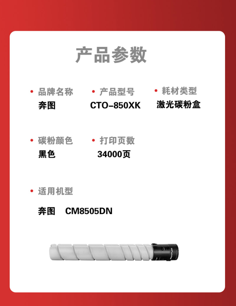 奔图(PANTUM) CTO-850XK 打印量34000页 适用CP9502DN/CM8506DN 粉盒 (计价单位:只) 黑色 黑色
