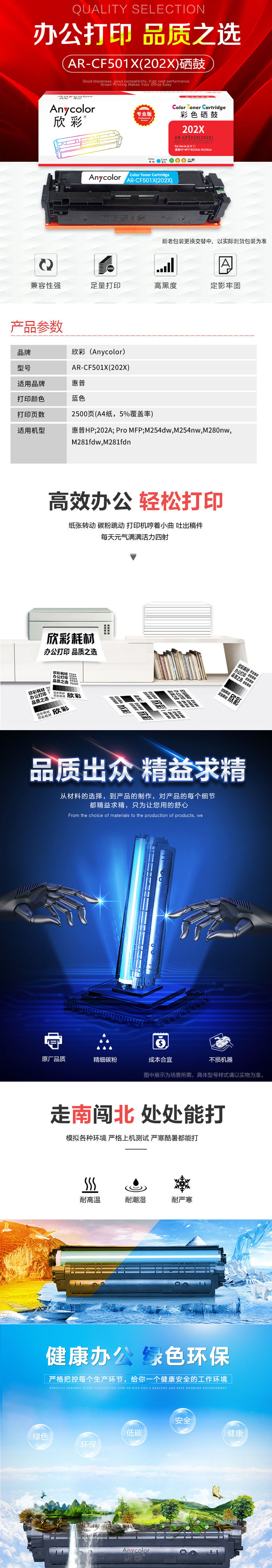 欣彩AR-CF501X(202X)硒鼓蓝色大容量专业版 适用惠普CF501A/X M254dn M280nw M281fdn 单位:支 起订量1支 蓝色