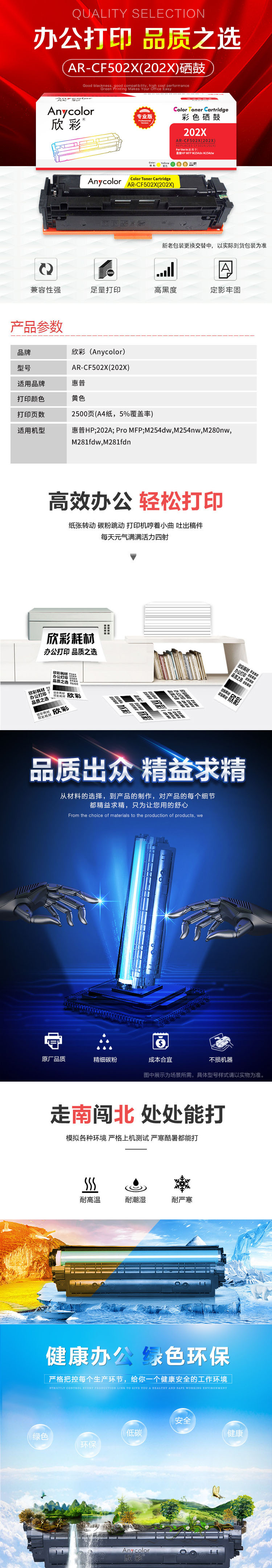 欣彩AR-CF502X(202X)硒鼓黄色大容量专业版 适用惠普CF502A/X M254dn M280nw M281fdn 单位:支 起订量1支 黄色