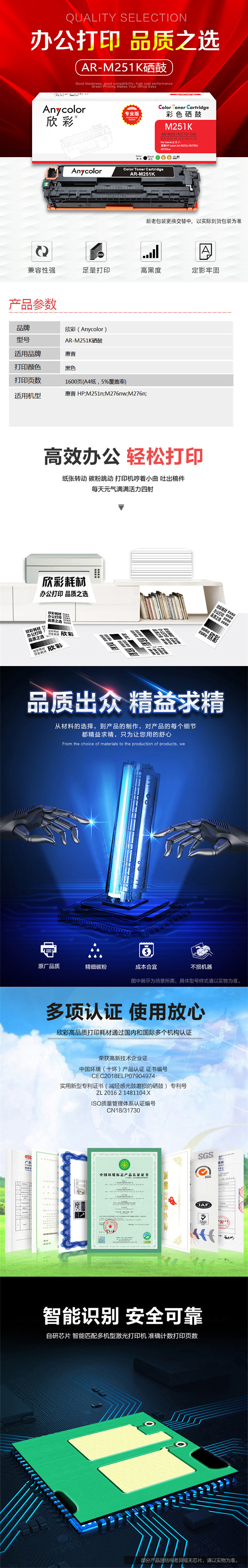 欣彩(Anycolor) AR-M251K 专业版 1600页 适用惠普 M251n 硒鼓 1.00 只/支 (计价单位:支) 黑色
