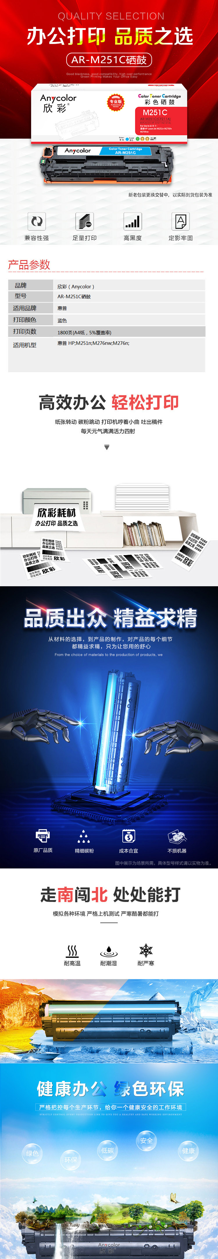 欣彩(Anycolor) AR-M251C 专业版1800页 适用惠普 M251n 硒鼓 1.00 只/支 (计价单位:支) 蓝色